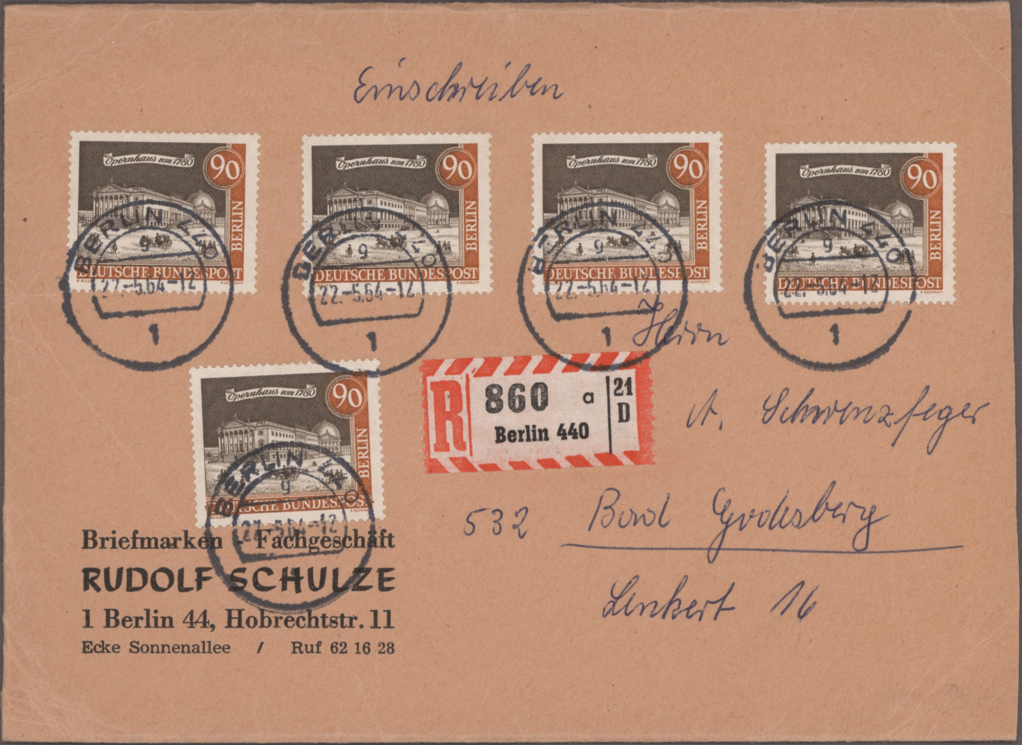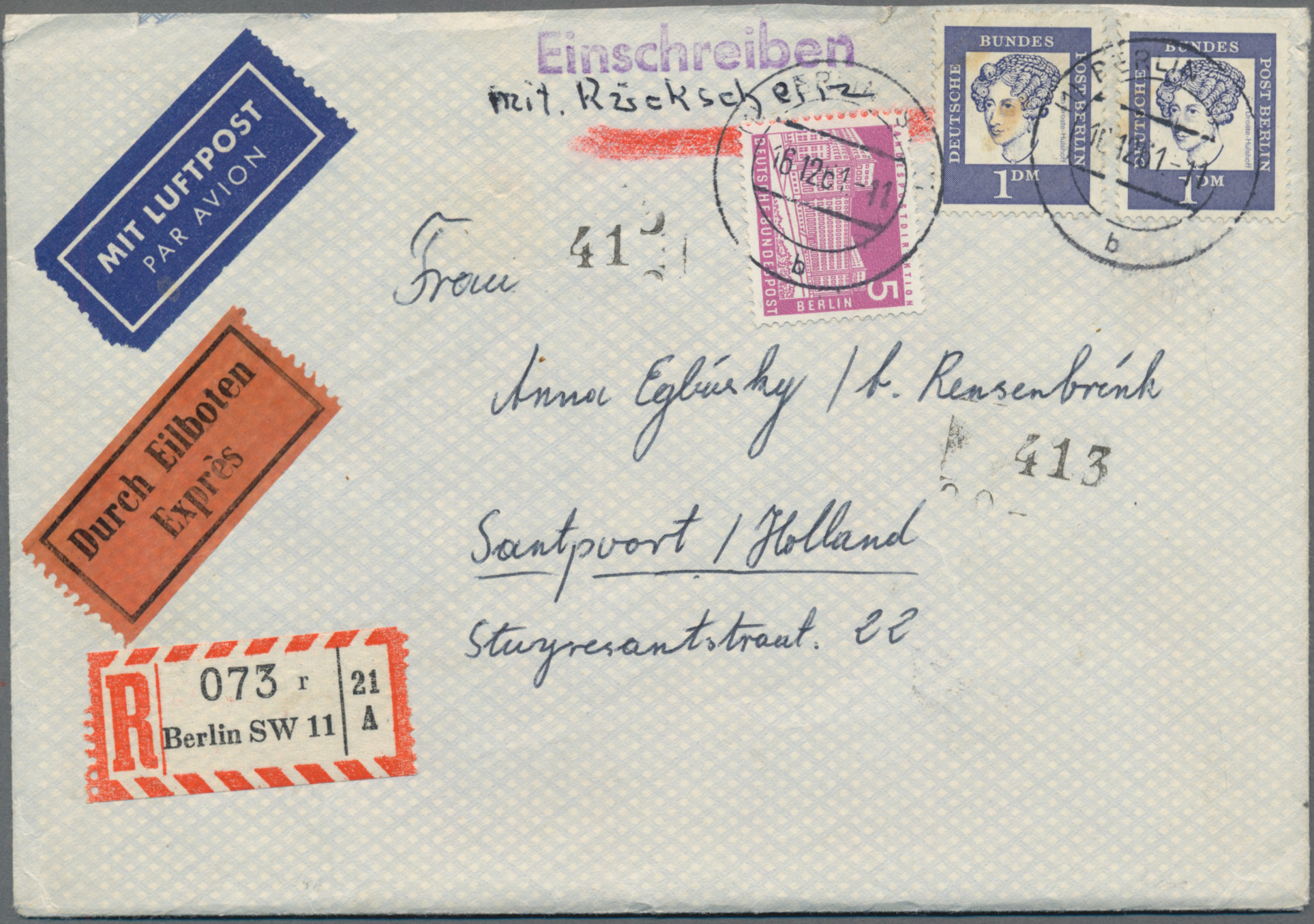 2.Gewichtsstufe in die Schweiz, 16 EF auf R-Brief, 27 EF auf Luftpostbrief, 28 EF auf Brief nach Stockholm, 29 EF auf Nachnahmebrief, usw.