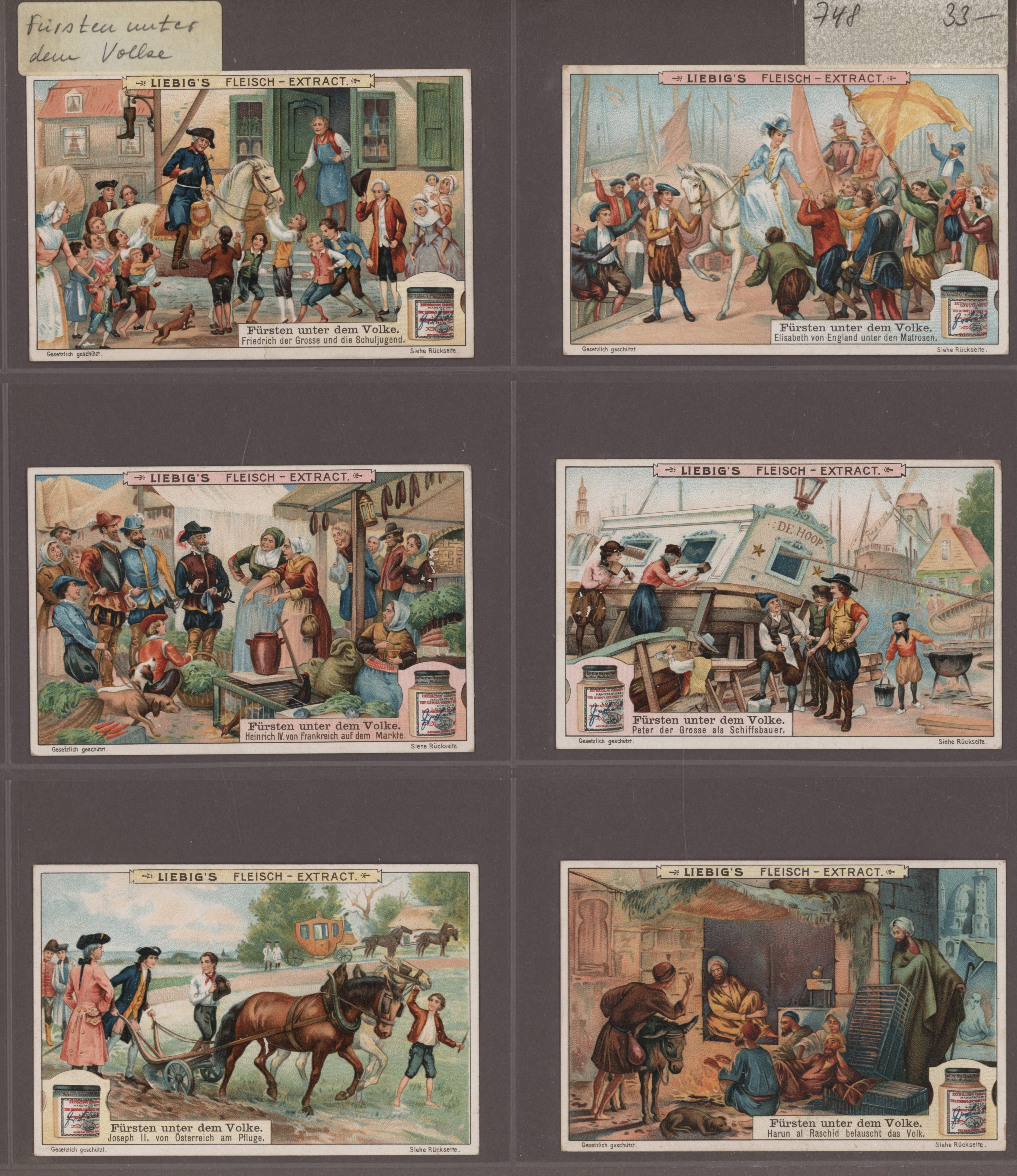 Liebig-Bilder, ca. 288, ganz überwiegend verschiedene Bilder ex Serien-Nummer 726-744, dazu ein paar Dubletten. (1064727) (Image) (image1)