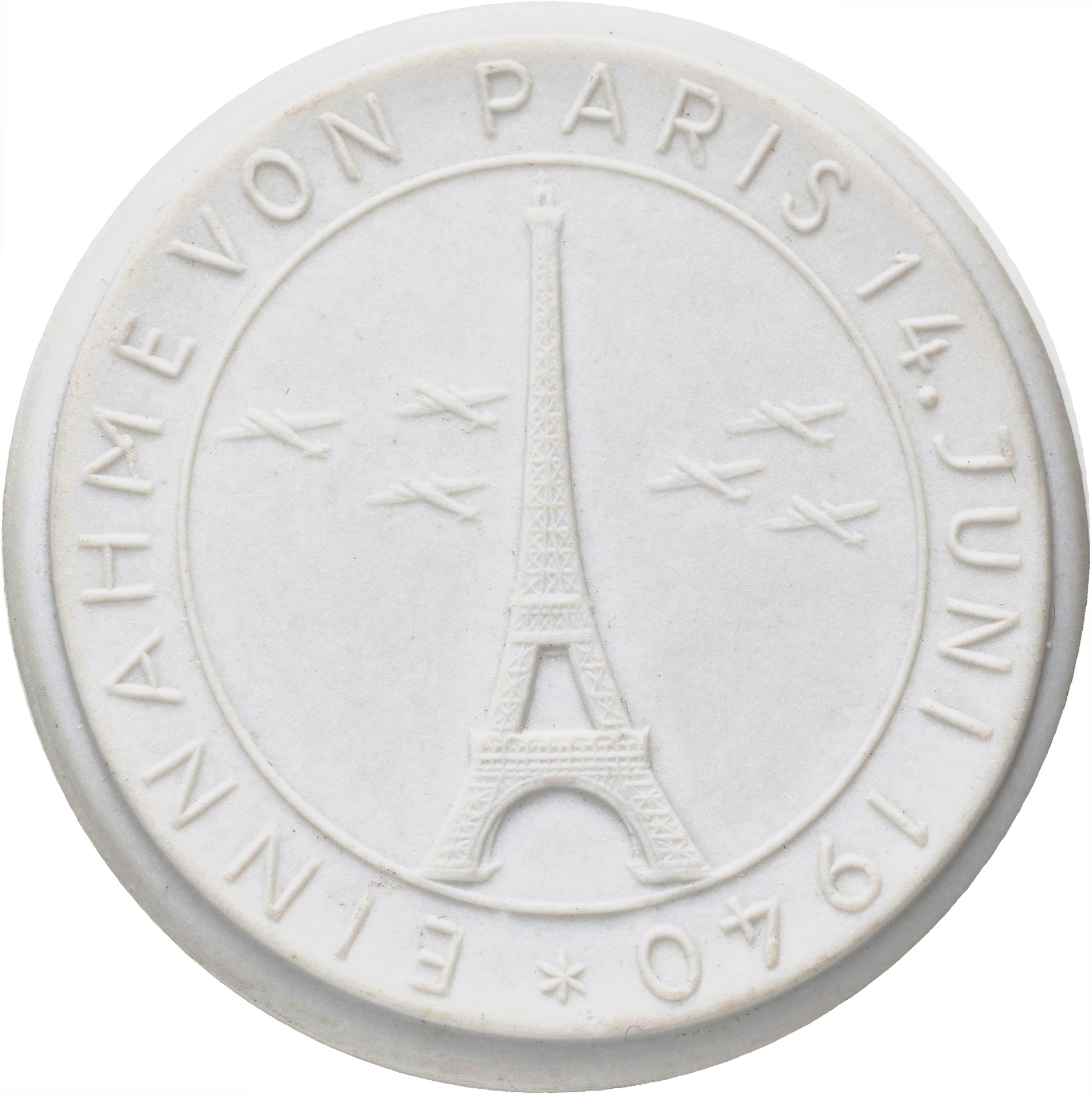 Medaille aus weißem Biskuitporzellan 1940 auf die Einnahme von Paris, 47,8 mm, im Feld etwas fleckig, Scheuch 1871