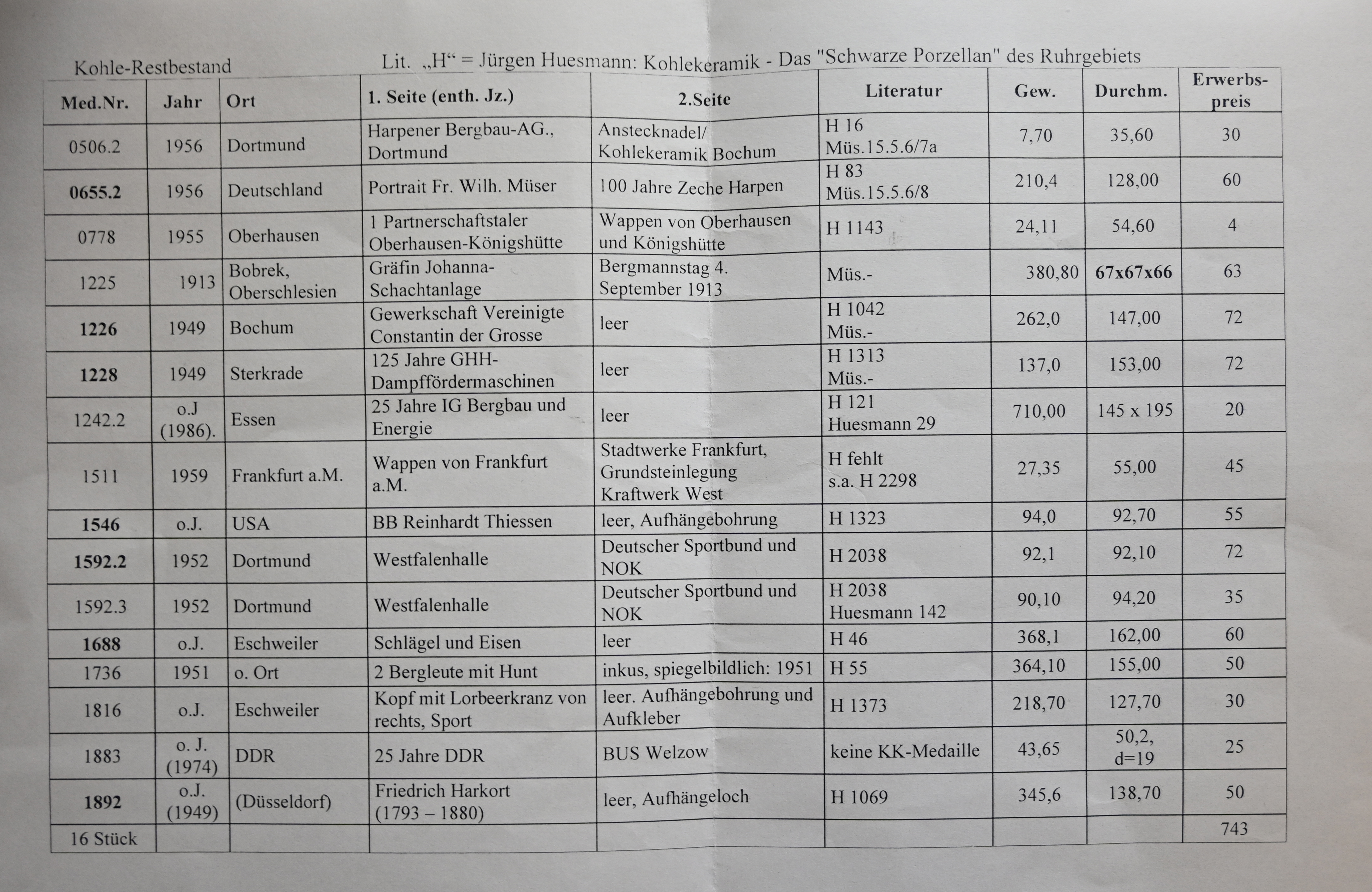 Kohlekeramik: Lot 16 Medaillen aus dem schwarzen Porzellan des Ruhrgebiets zu diversen Anlässen. Alle Bestimmt mit einer Beschreibung. (1064026) (Image) (image1)