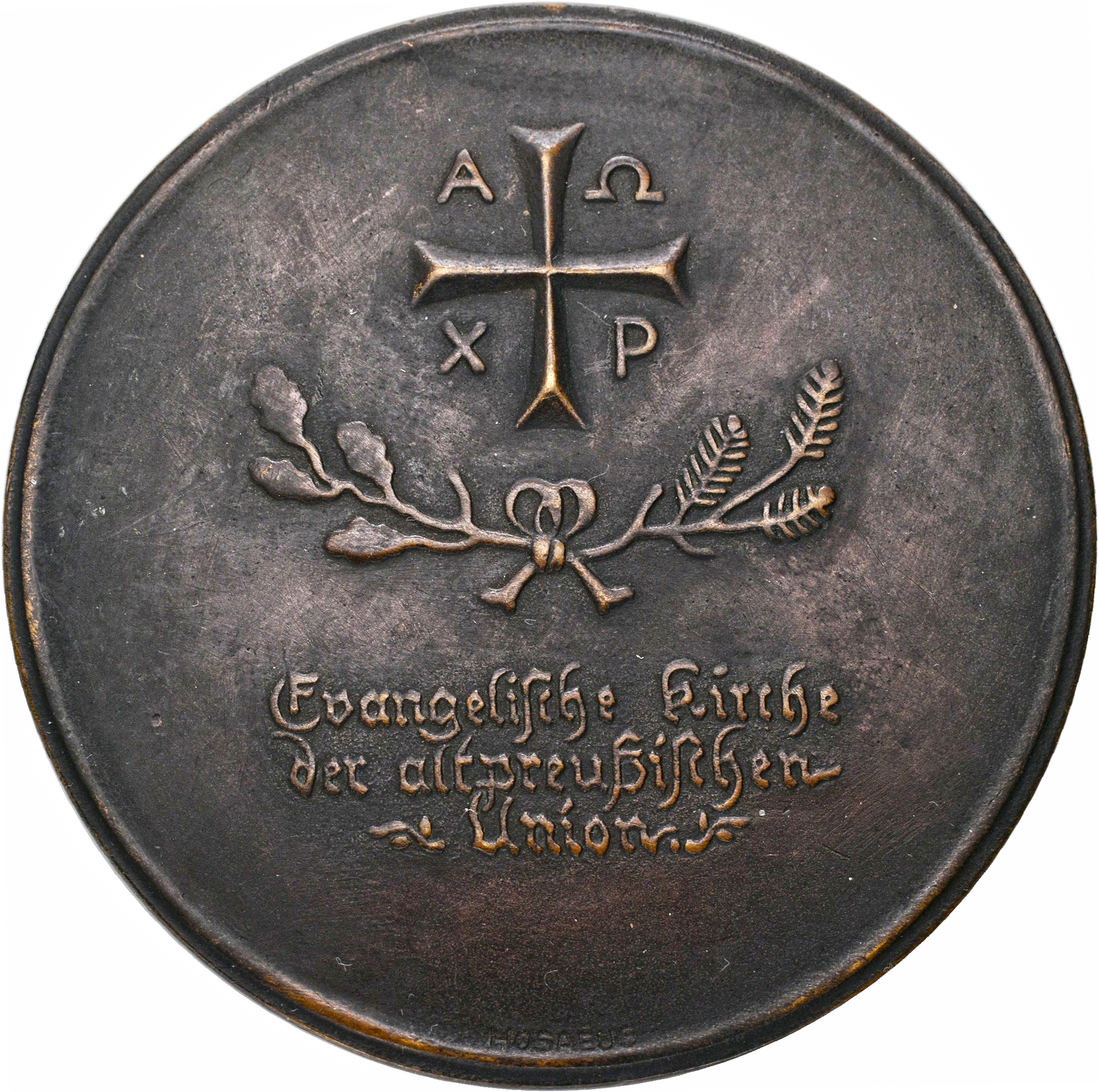 Preußen: Bronzegussmedaille o.J. (H. Hosaeus), Gründung der Evangelische Kirche der altpreußischen Union; 78,5 mm, 130,3 g, vorzüglich.