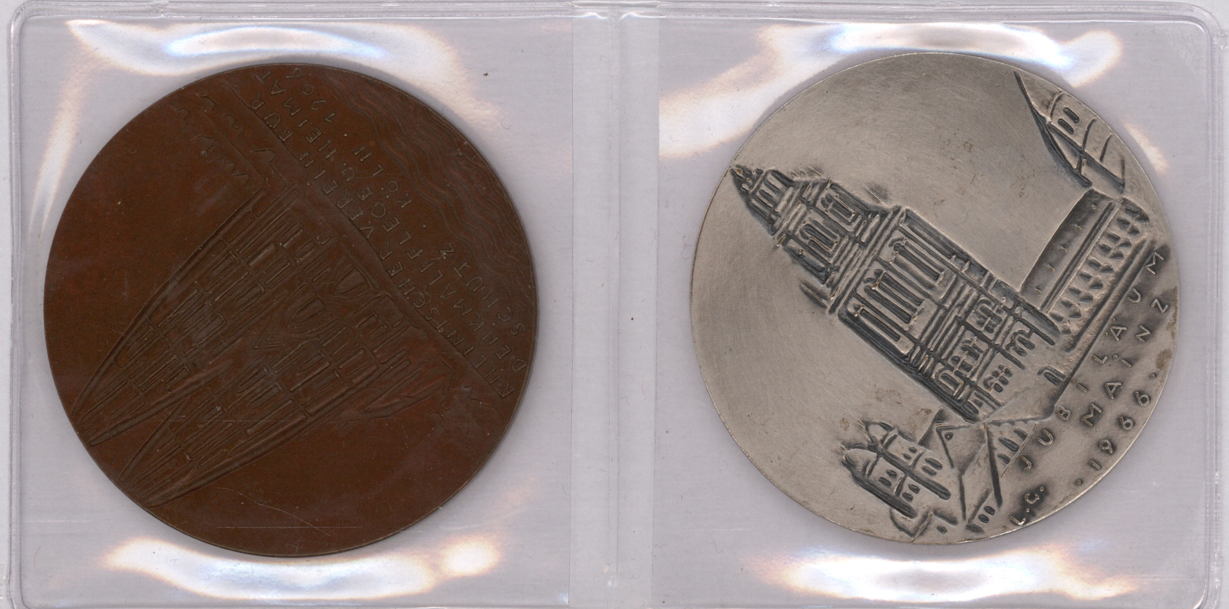 Köln: Lot 2 Stück; 2 x Bronzemedaille 1966 von L. Gies (1 x versilbert), 60 Jahre Rheinischer Verein für Denkmalschutz, je 60 mm, vorzüglich.