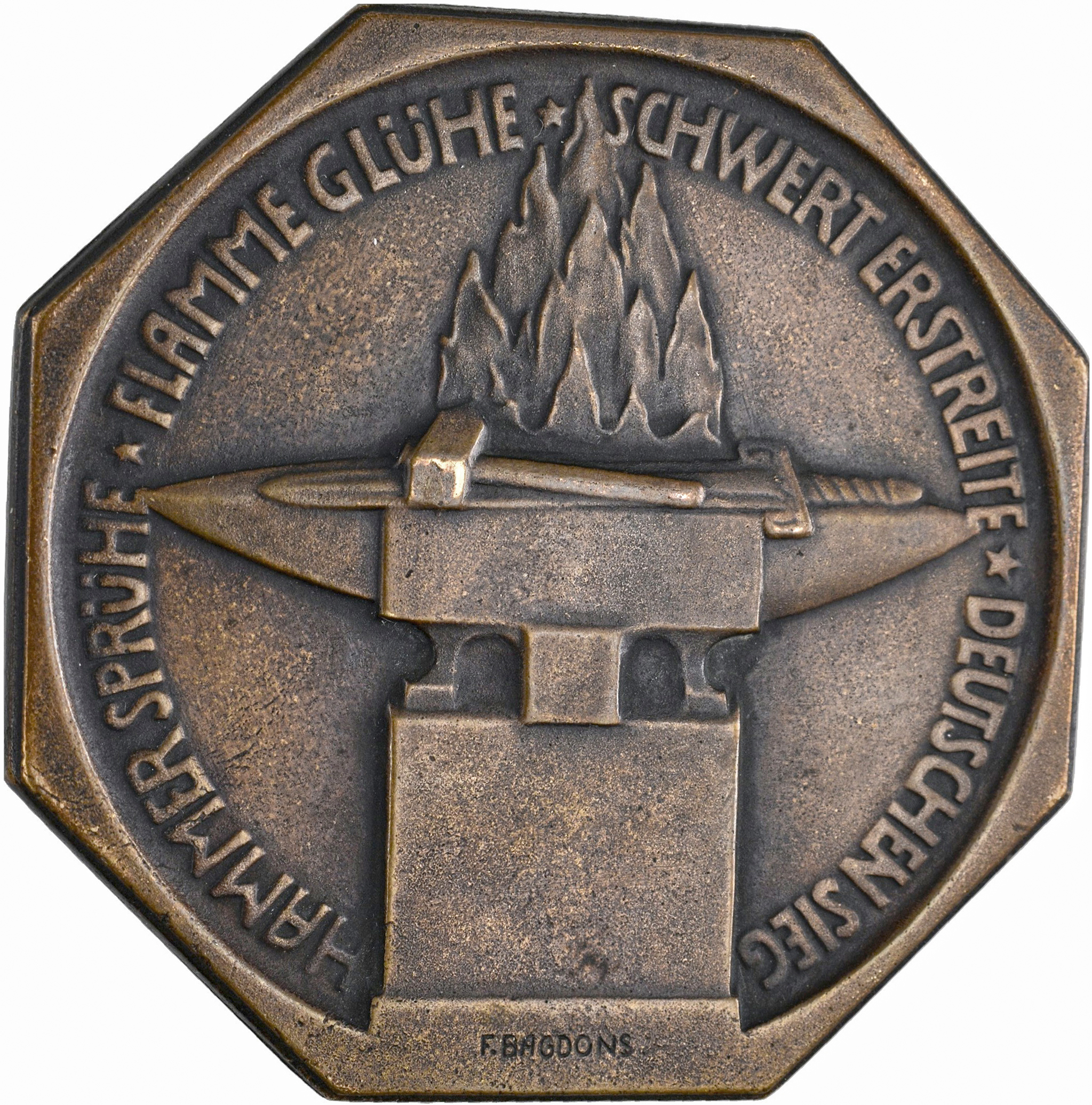 Hagen: Oktogonale Bronzegussmedaille 1915 (v.F. Bagdons); Der Eiserne Schmied von Hagen, 76,4 mm, 234,4 g, vorzüglich. (1054753) (Image) (image1)