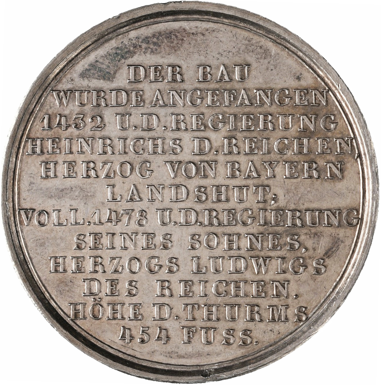 Bayern, Landshut: Silbermedaille 1831 von F. Neuss zum 400-jährigen Jubiläum der St. Martins-Kirche. Ansicht der Kirche im Oval // Baudaten in