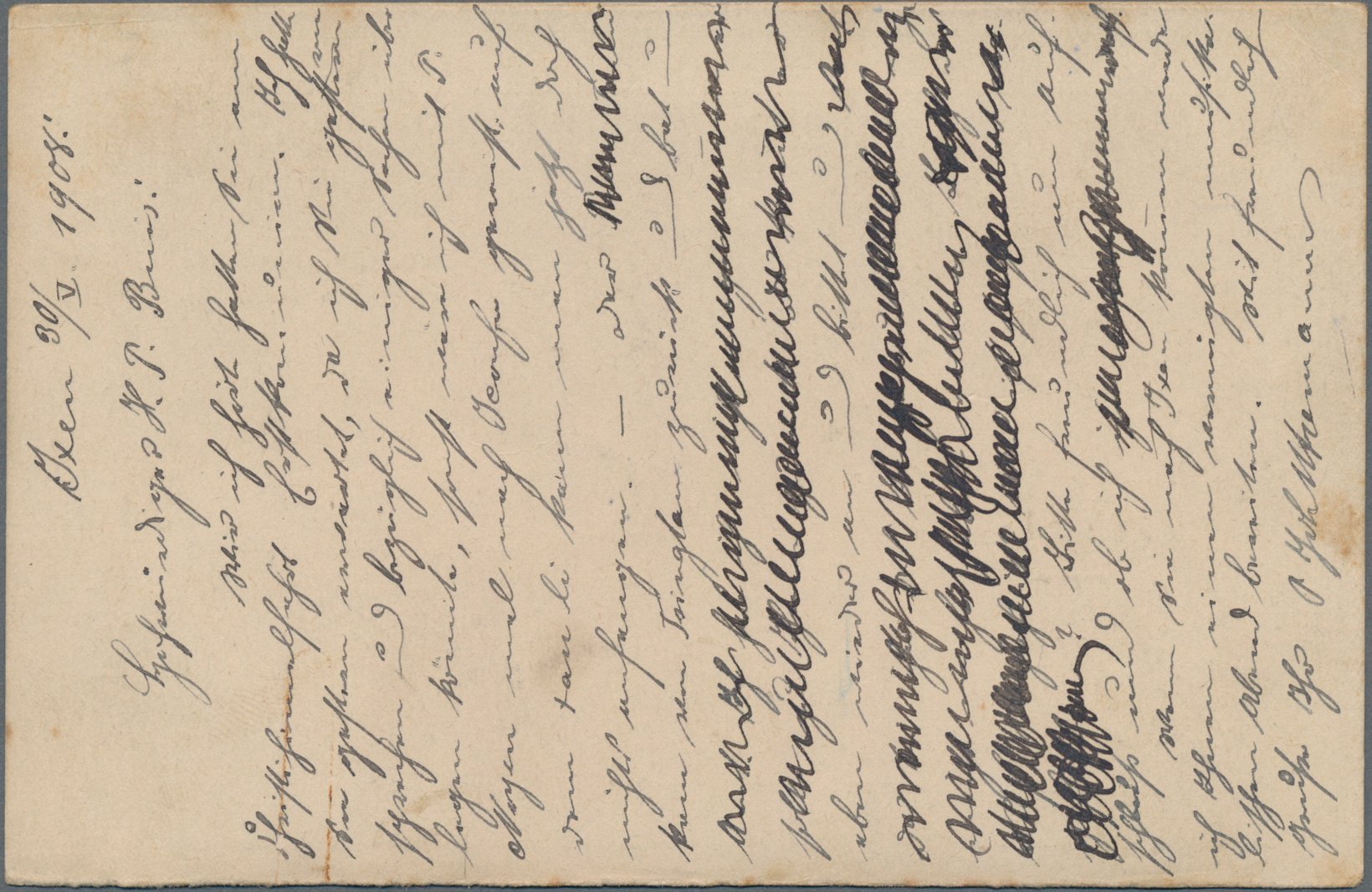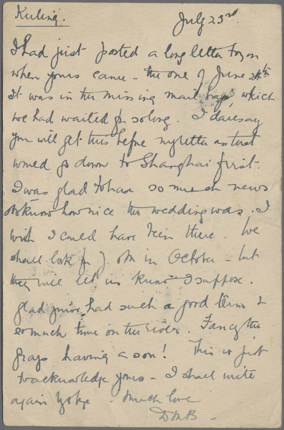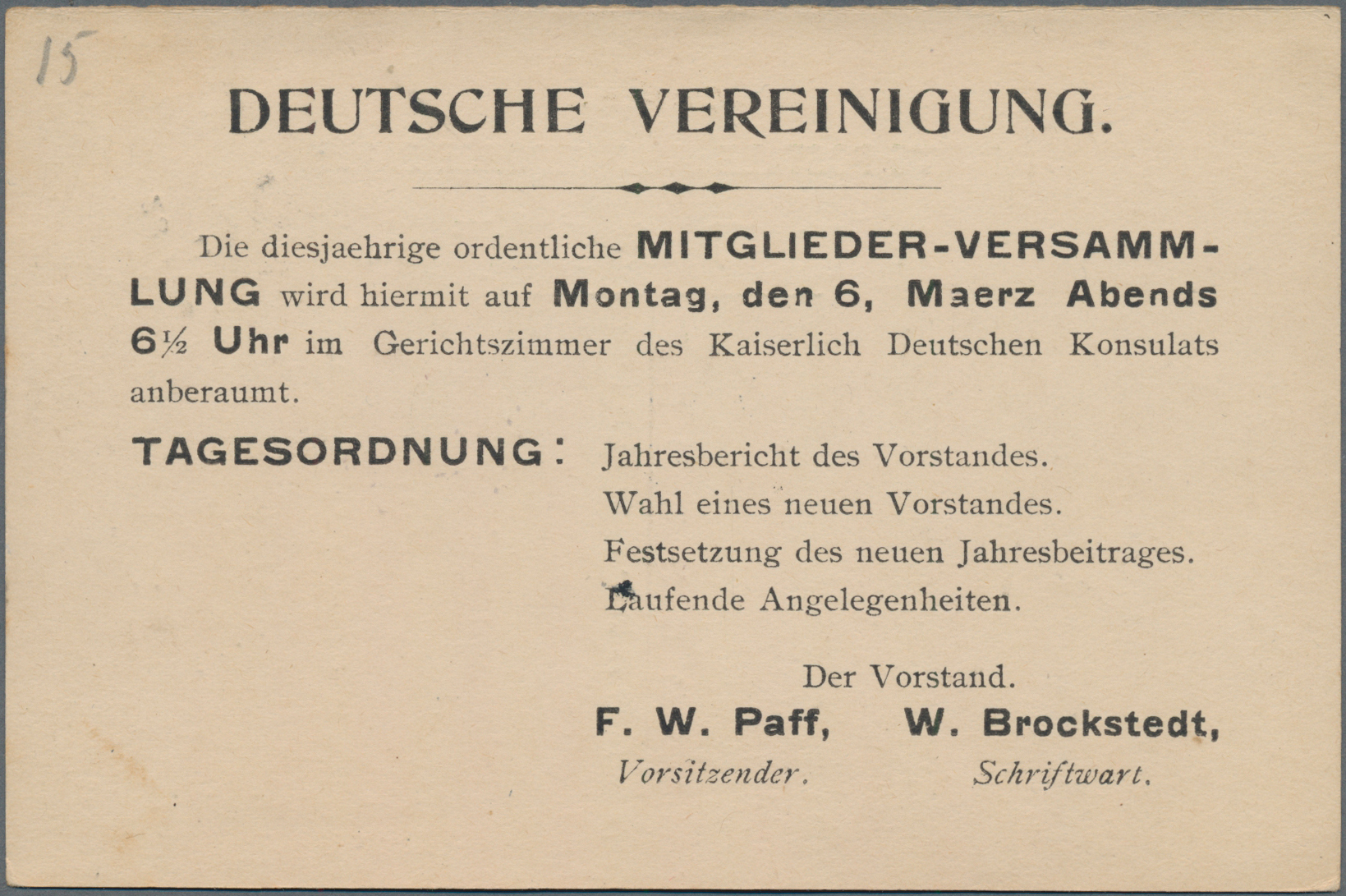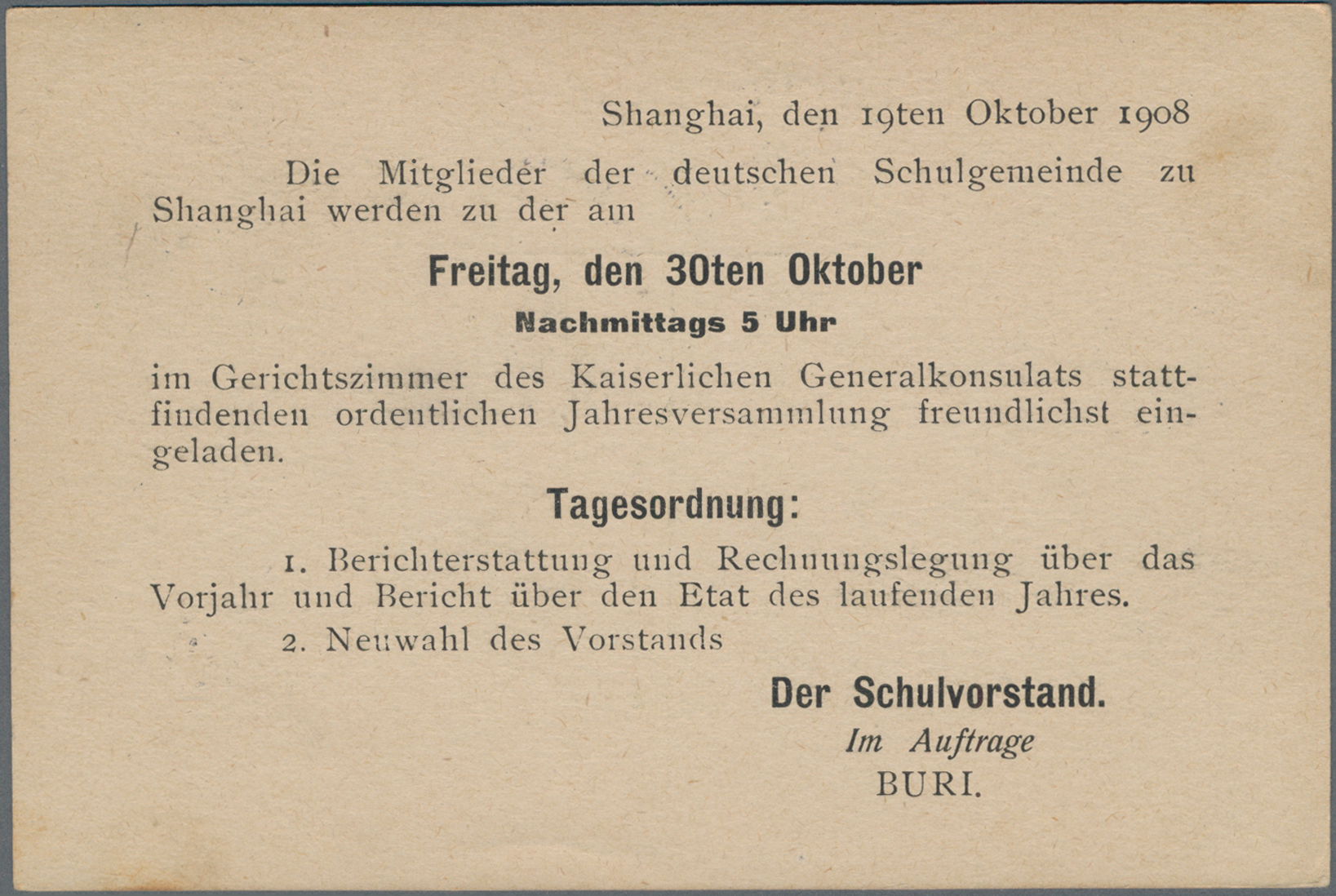 Germany w. arrival "BORGHORST 9.6.02", senders dateline on reverse "Puoly d. 20. April 1902". ÷ 1902, 5 Pf. Kaiseryacht entwertet "TSINGTAU" und ½ C. braun CIP auf 1 Ct. Ganzsachenkarte (Ovalstpl. "Peking") von Missionar Pieper in Puoly nach