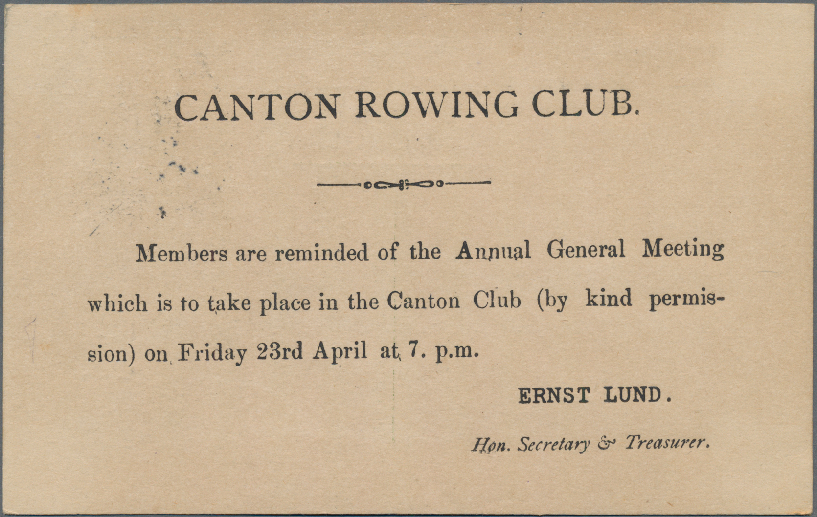 1898, card CIP 1 C. uprated coiling dragon 1 C., 2 C. tied lunar dater "Kwangtung.Hingning -7.12" in combination with Hong Kong, KEVII 4 C. tied boxed