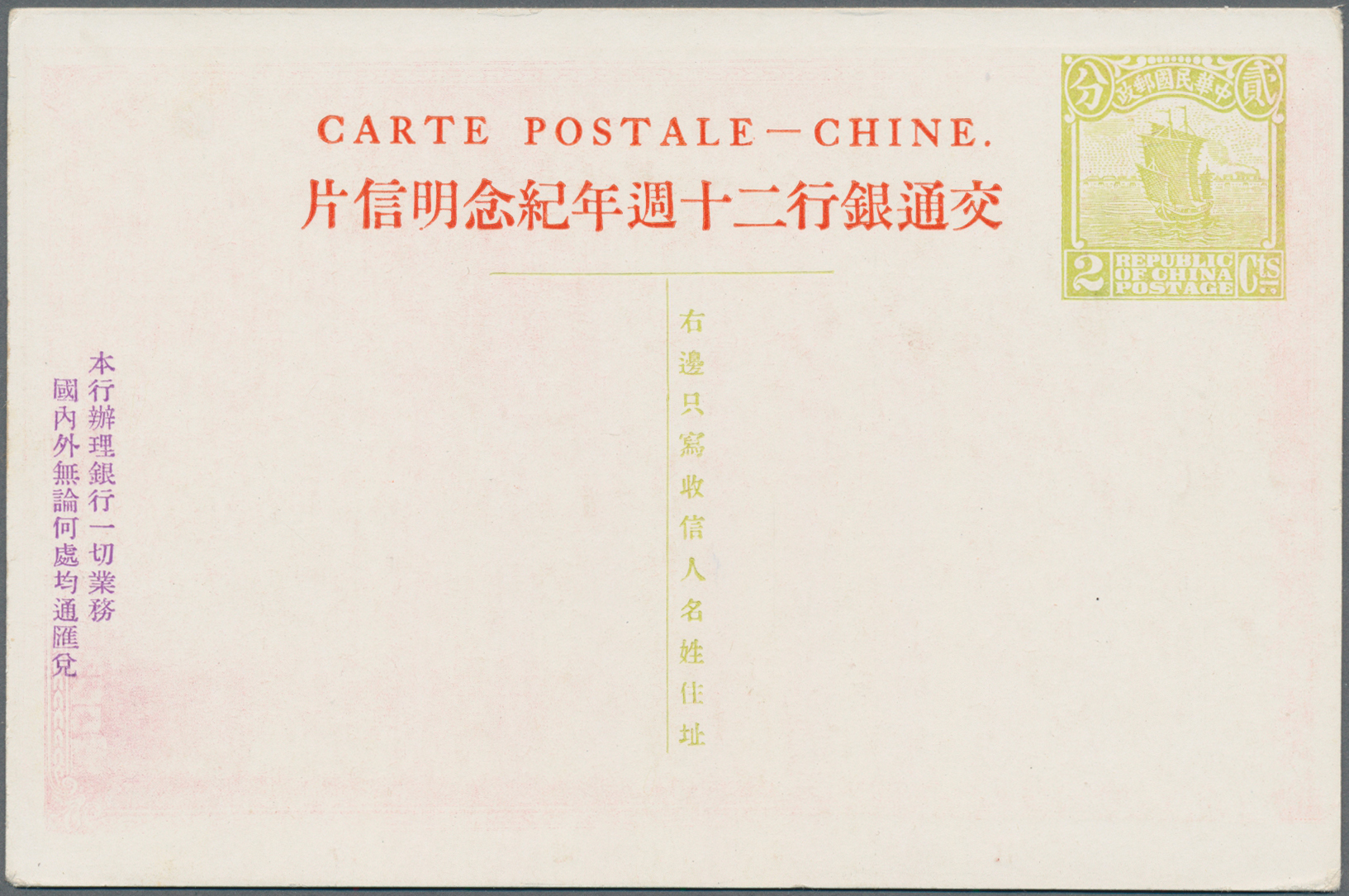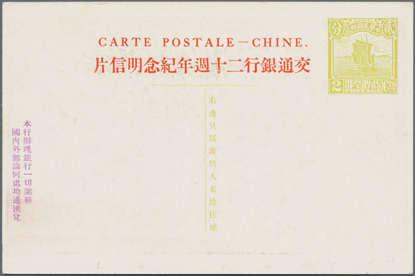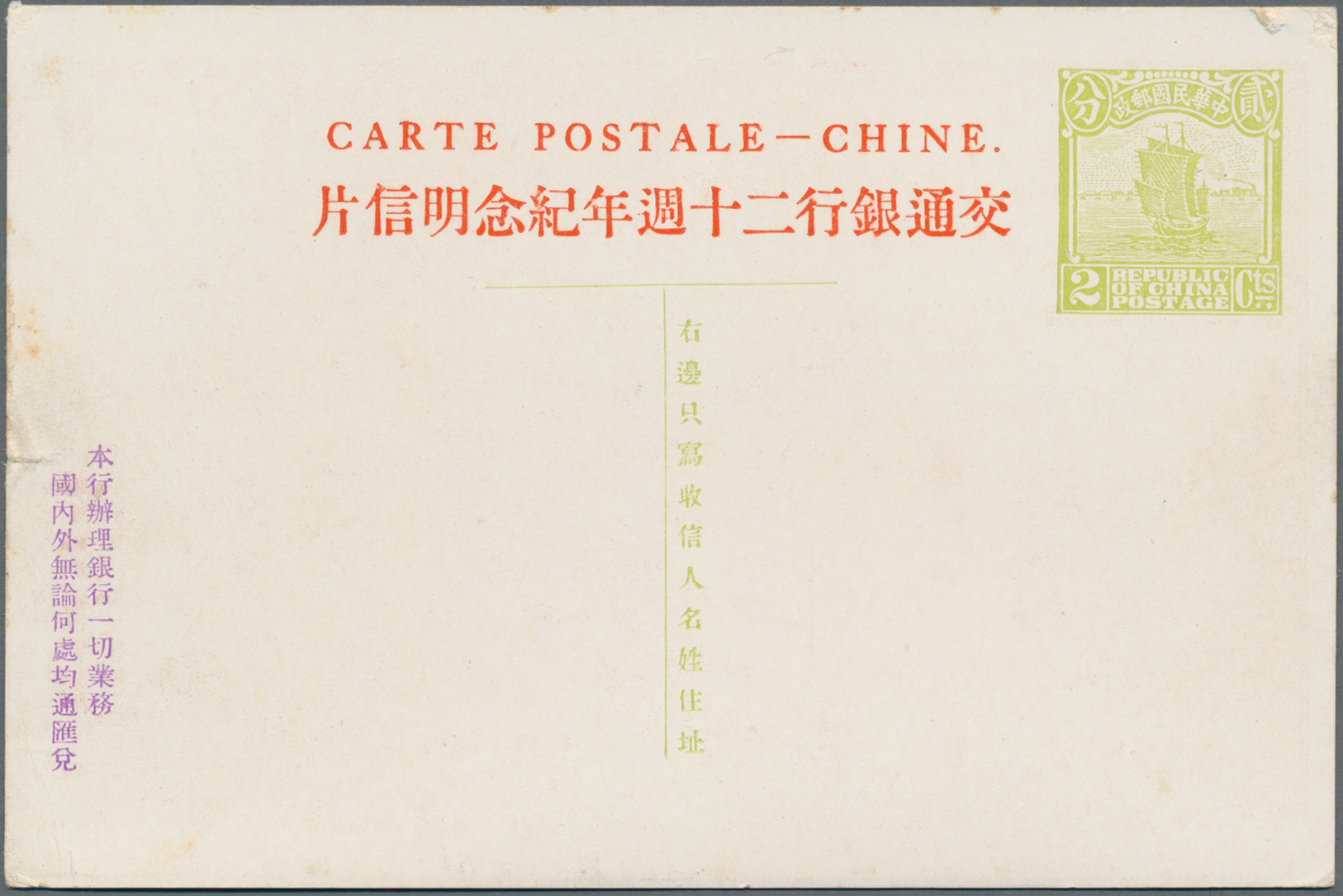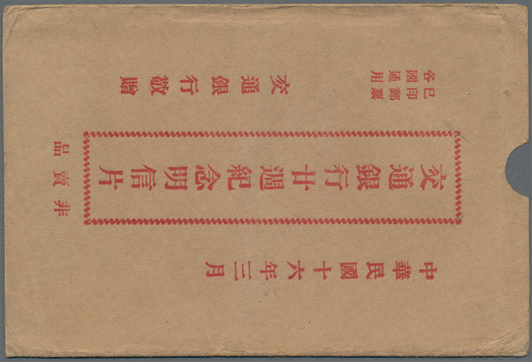 1927, Bank of Communications jubilee, complete set of four cards of 2 C. light green, unused mint, with original folder imprinted "China Republic 16th