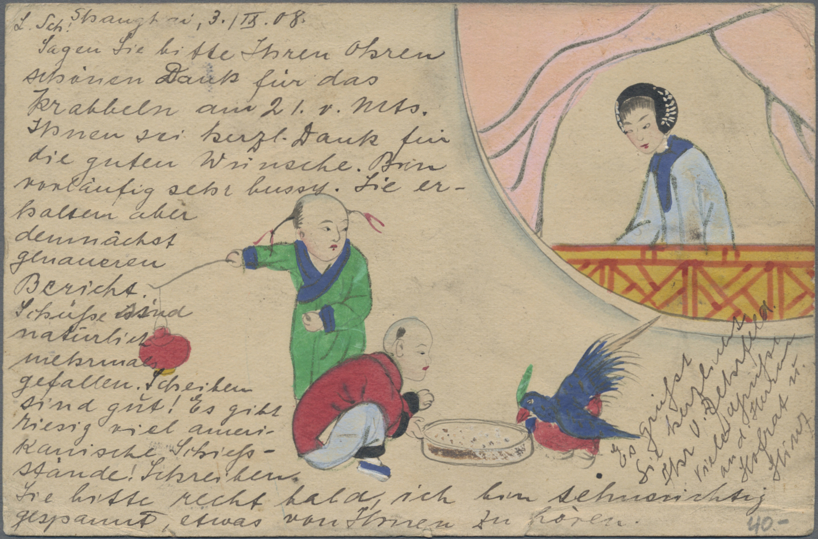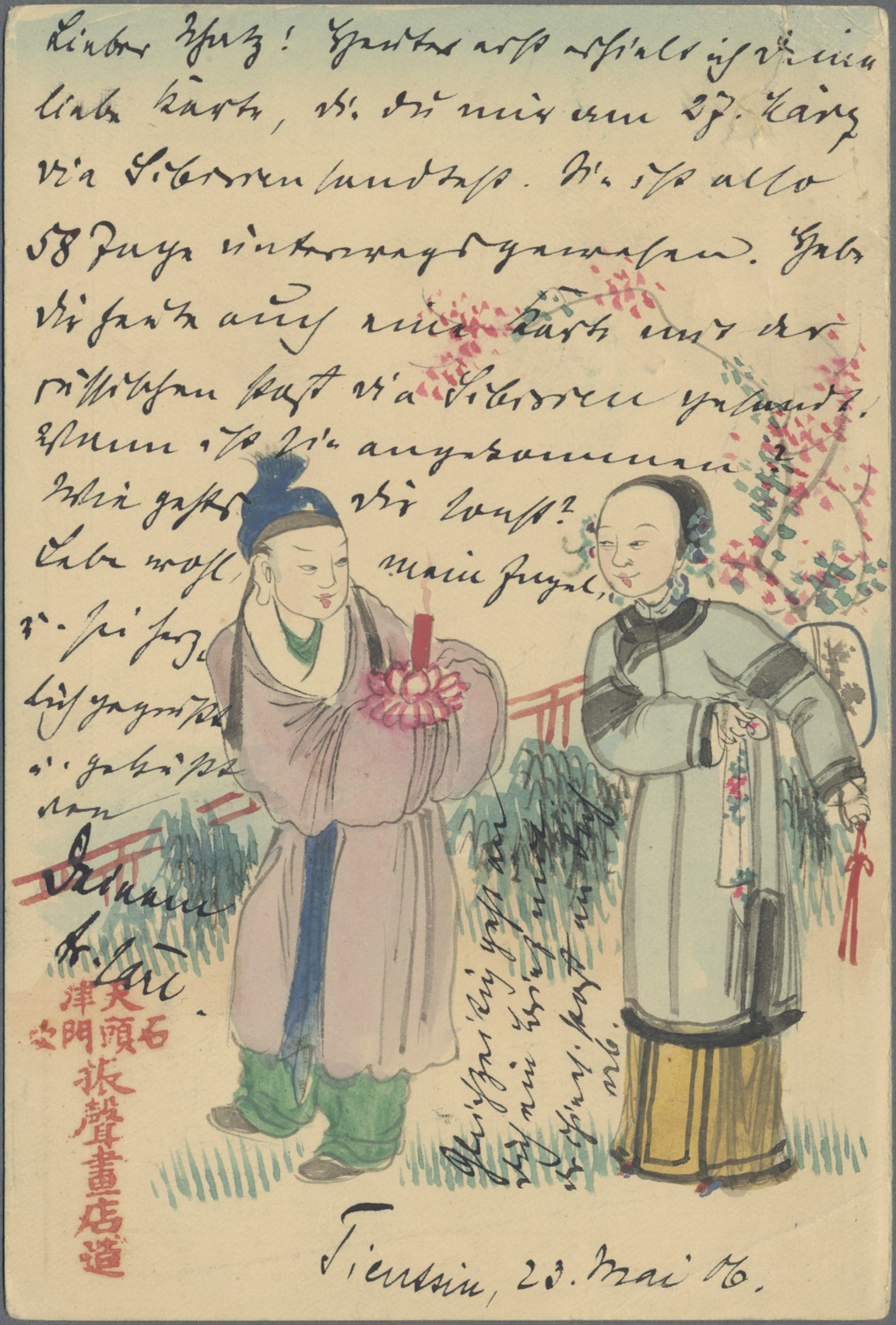 06" to Celle/Germany with arrival. On reverse multicolour painting of chinese pair.
