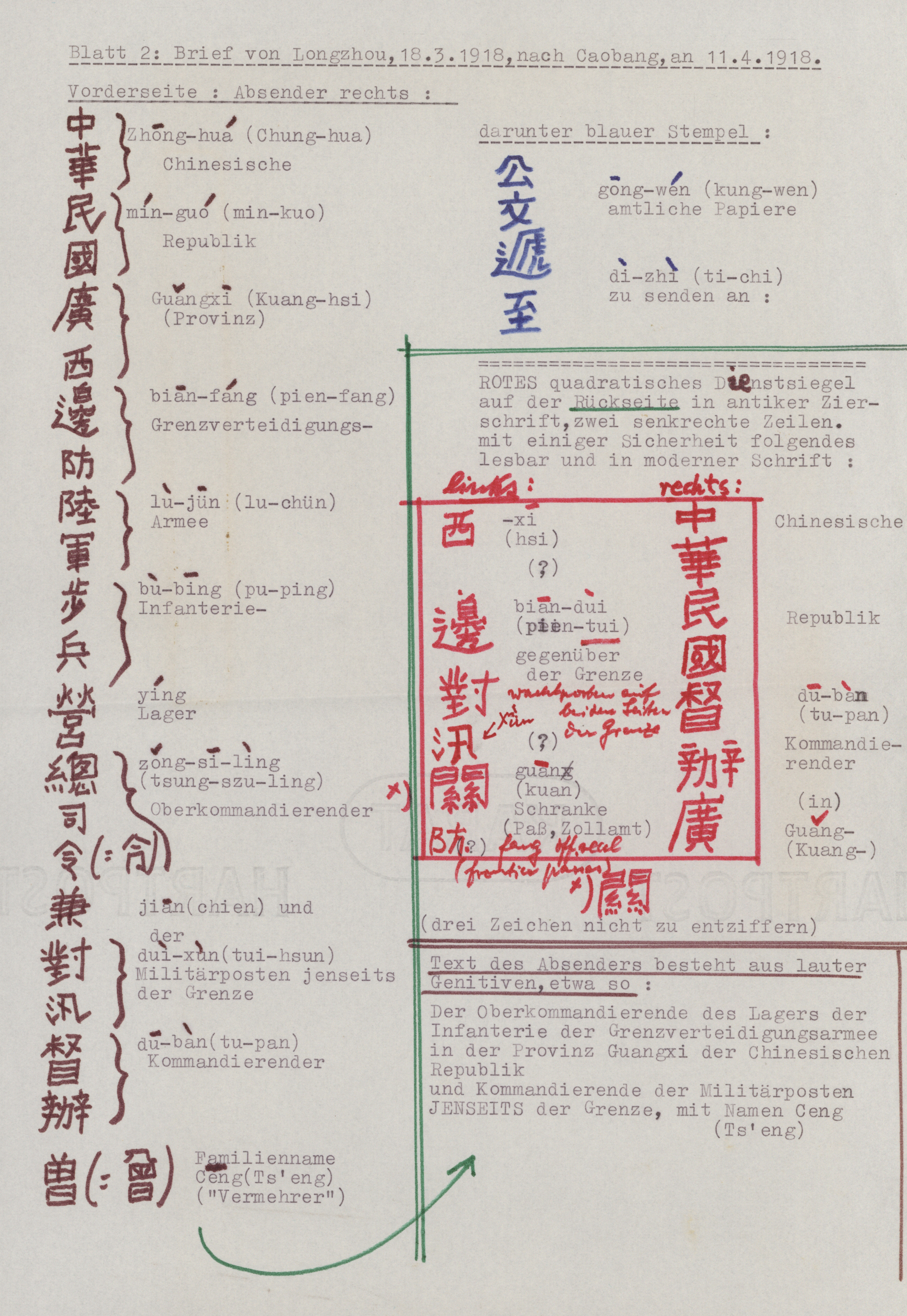 official cover to Commander French Military post at Caobang/Tongking with "11 Avril 18" backstamp. Sender China Kwanghsi Cdr. Infantry Rgt. Cover creases.