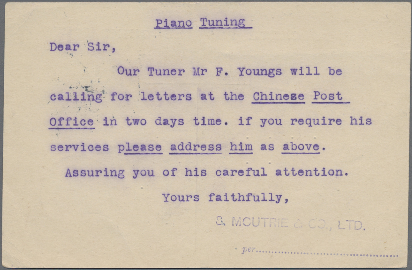 "I.P.O." of Swatow with "SWATOW" bilingual dater alongside, canc. "VICTORIA 28 AU 04" to Bern/Switzerland, send from Hokshuha mission. Late usage of I.P.O. postmark in South China and already on KEVII issue.