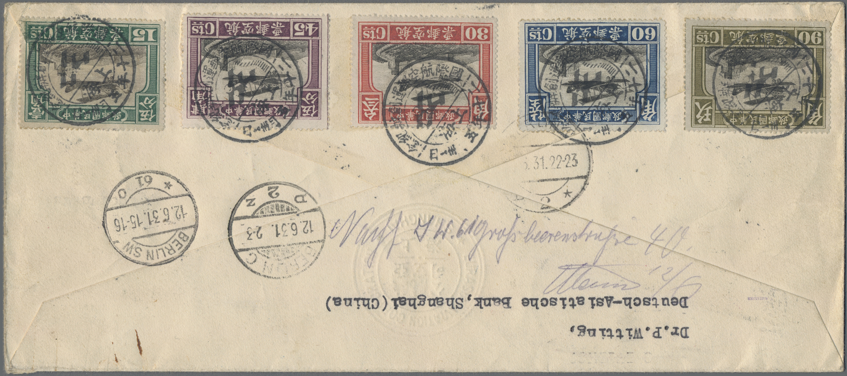 pictorial LCD "In commemoration of opening of international airmail Shanghai 31 May 1931" to registered air mail cover to Berlin/Germany with June 11/12 arrivals inc. large vermilion Berlin AP confirmation marking.