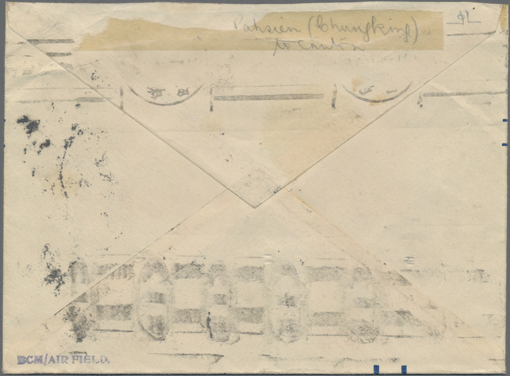 1929/33, airmail cover addressed to Canton bearing Szechwan Junk issue 5c pair, Airmail 2nd Peking printing 15c and 30c, tied by Chi./Eng. daters of Pahsien