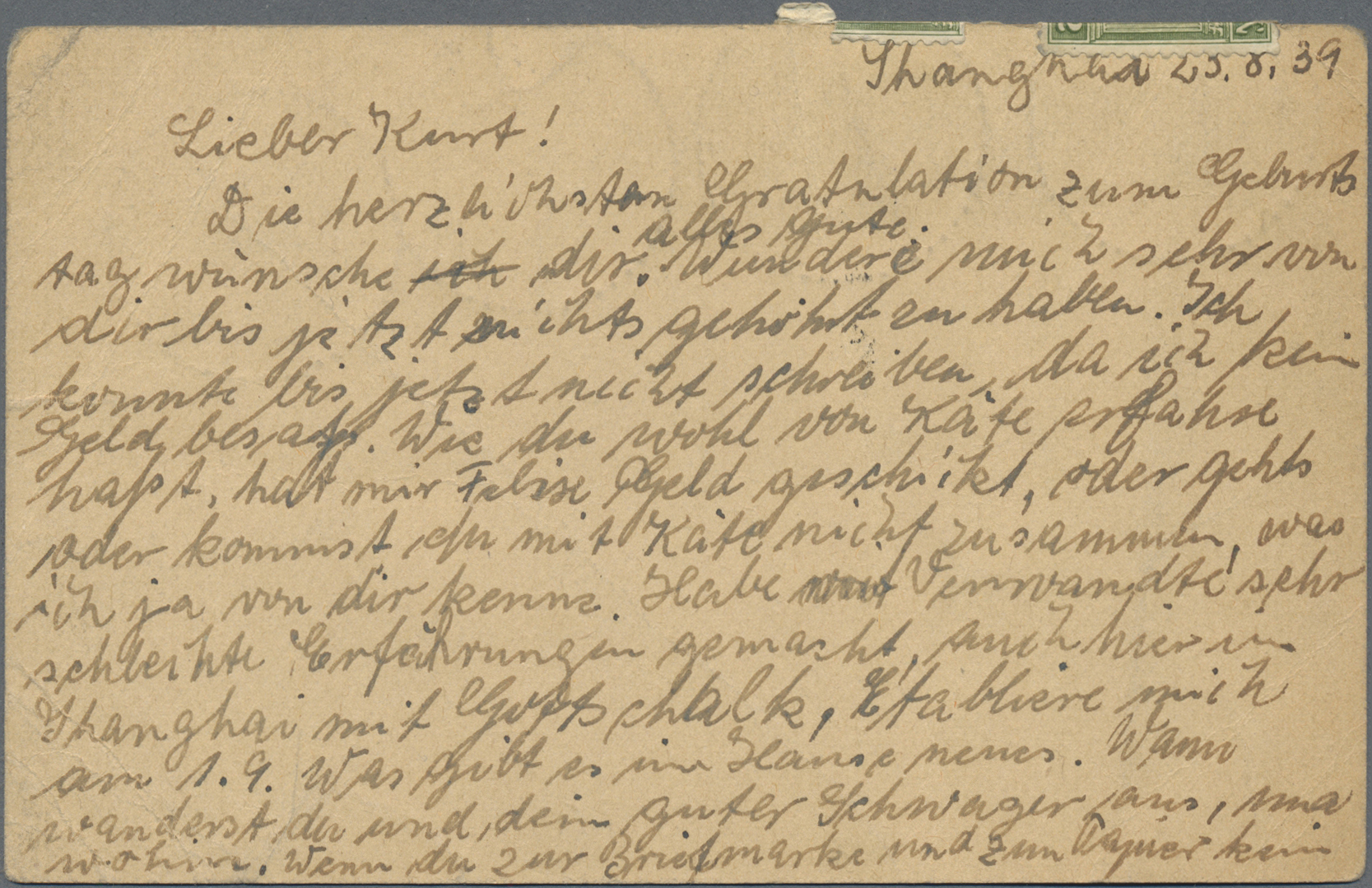 Shanghai China". - Believed to be part of the "X-mas/New Year" special mail allowance to Germany, a destination which was normally blocked by the Allies.