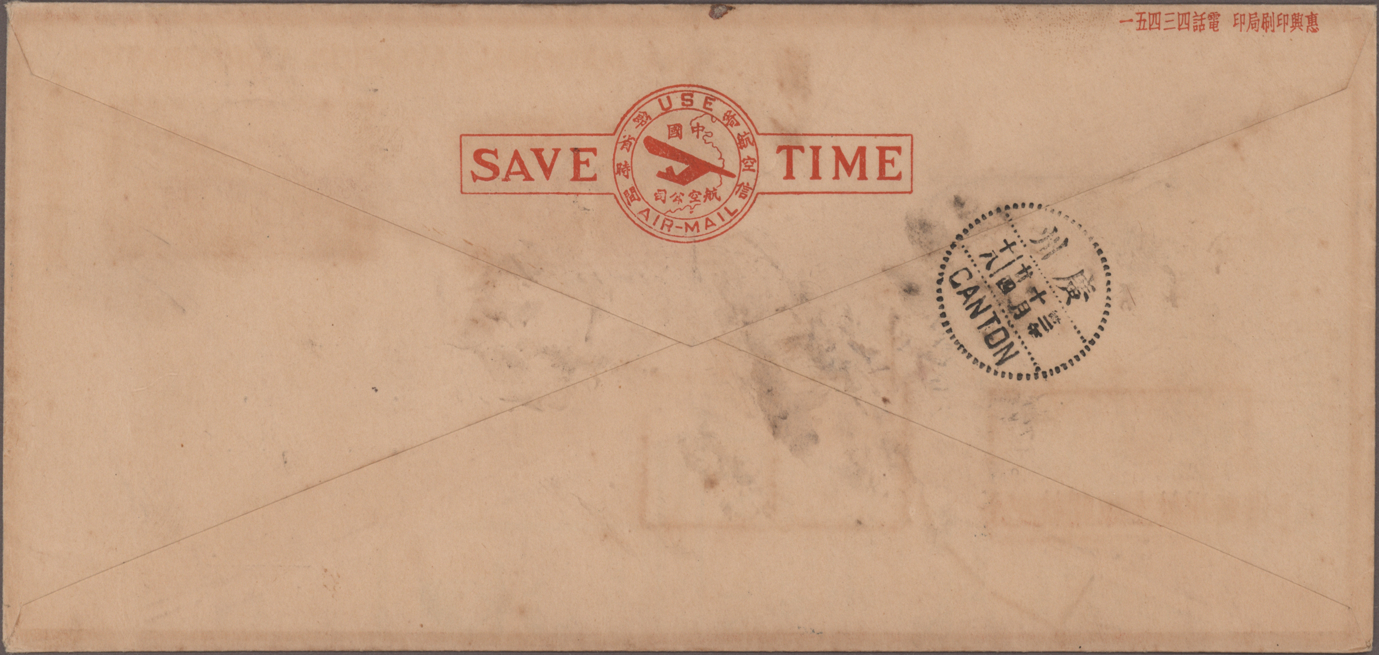 1932/37, first flight cover of the Shanghai-Canton route of China National Aviation Corporation, bearing Martyrs Peking printing 2.5c pair and airmail definitives
