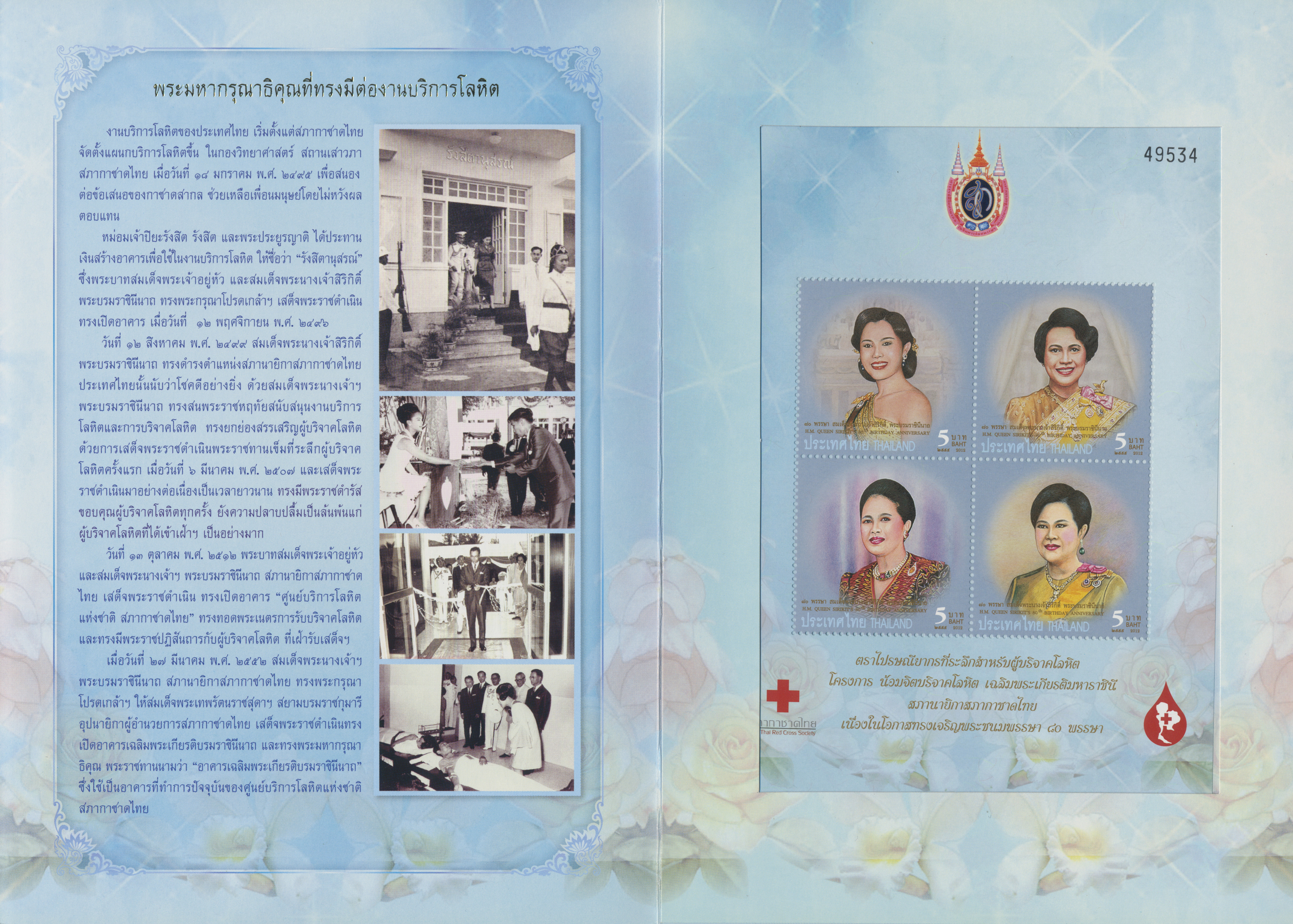 2012 Queen Sirikit's Birthday souvenir sheet with additional imprint and logo of the National Blood Donation, mint never hinged, fresh and very fine, in original folder. A
