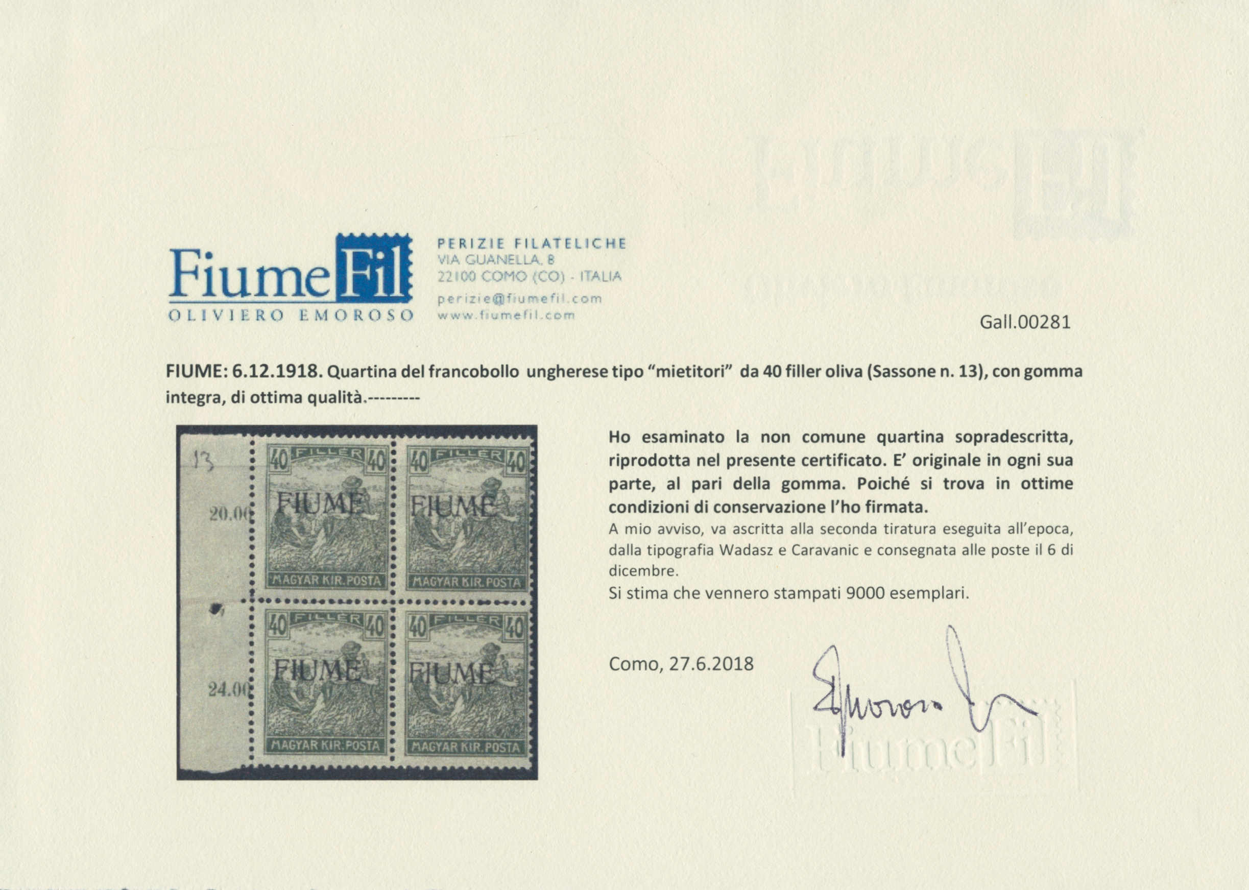 Get Market Data for [Fiume 17; Sass. 13 (4)] Visual Pricing Guide Sample Census