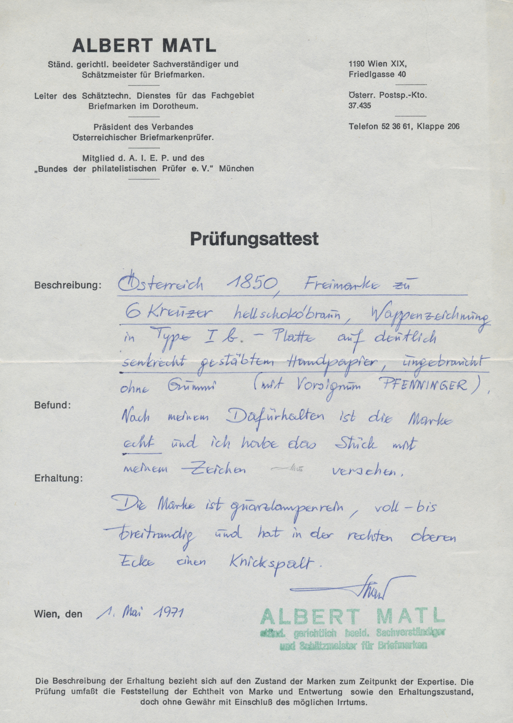 Get Market Data for [Austria 1X, Ferch. 1 H Ia (6)] Visual Pricing Guide Sample Census