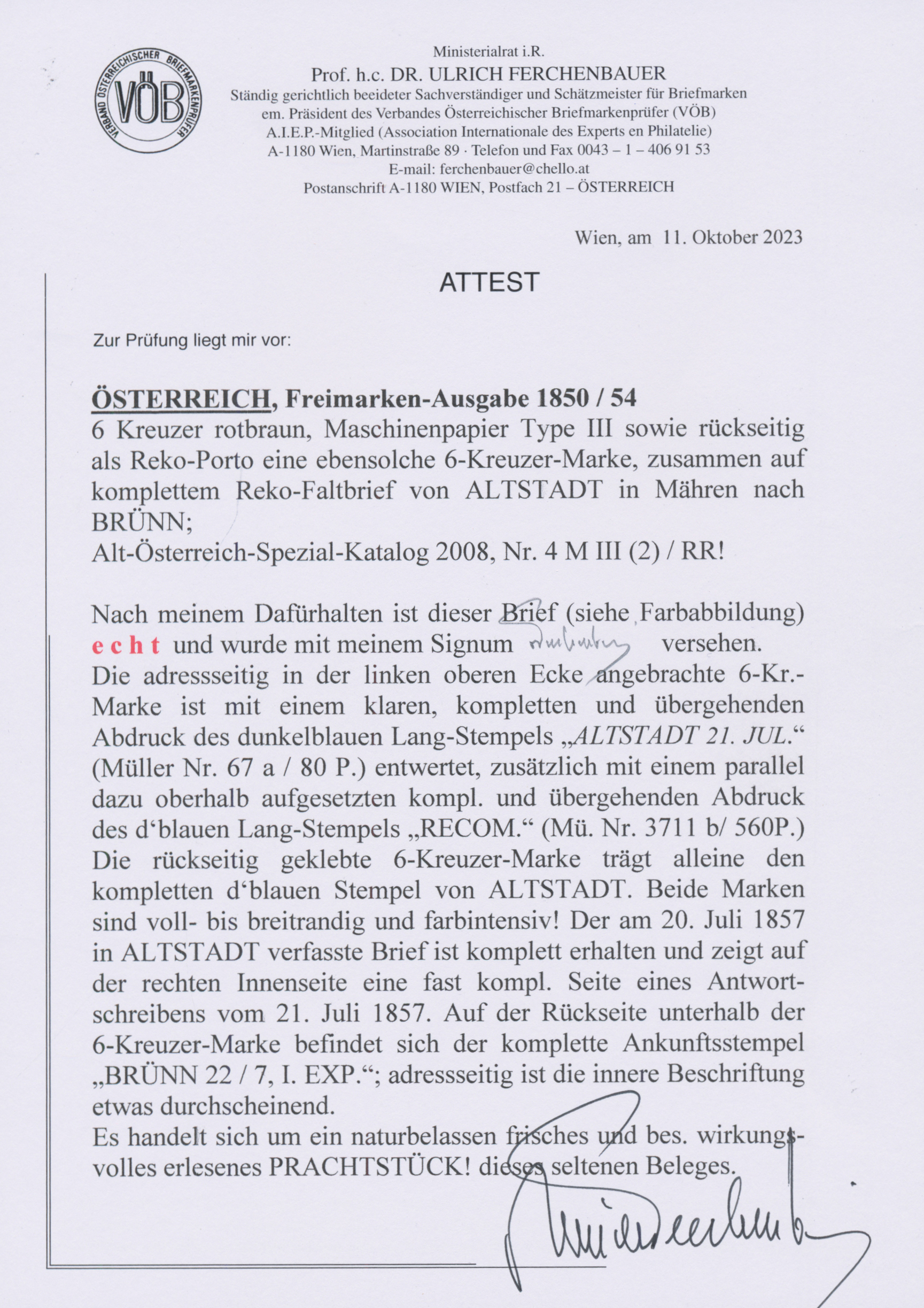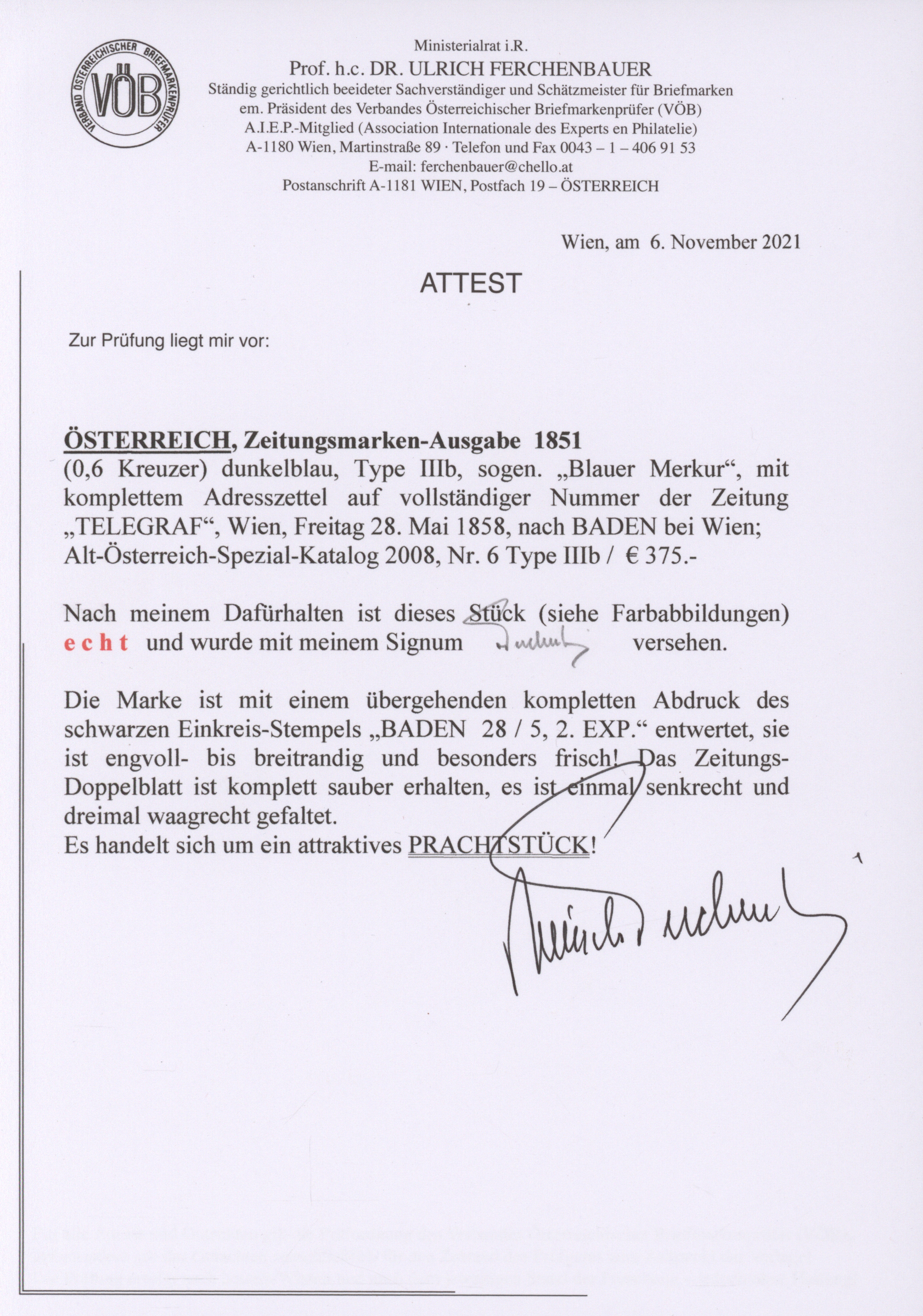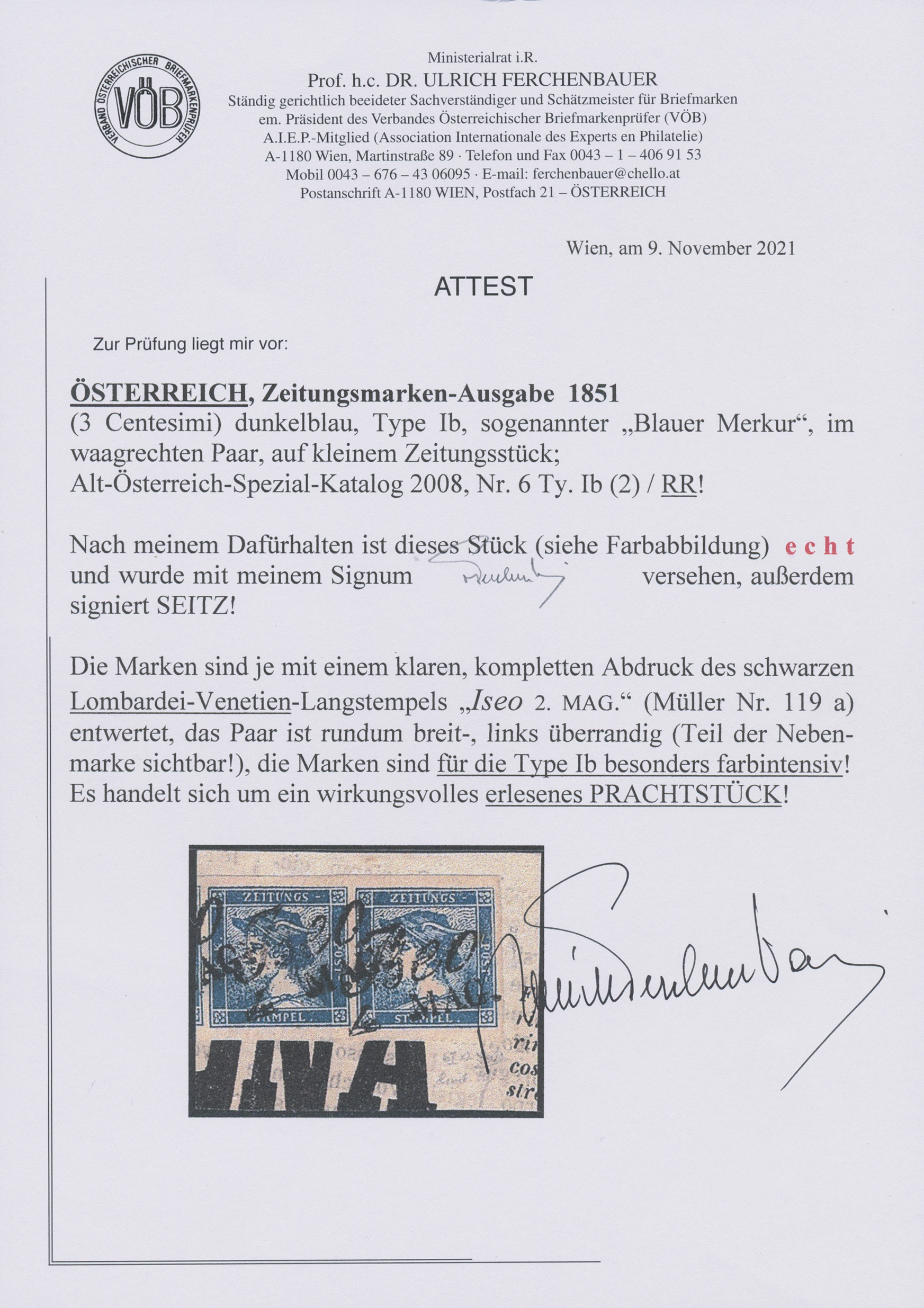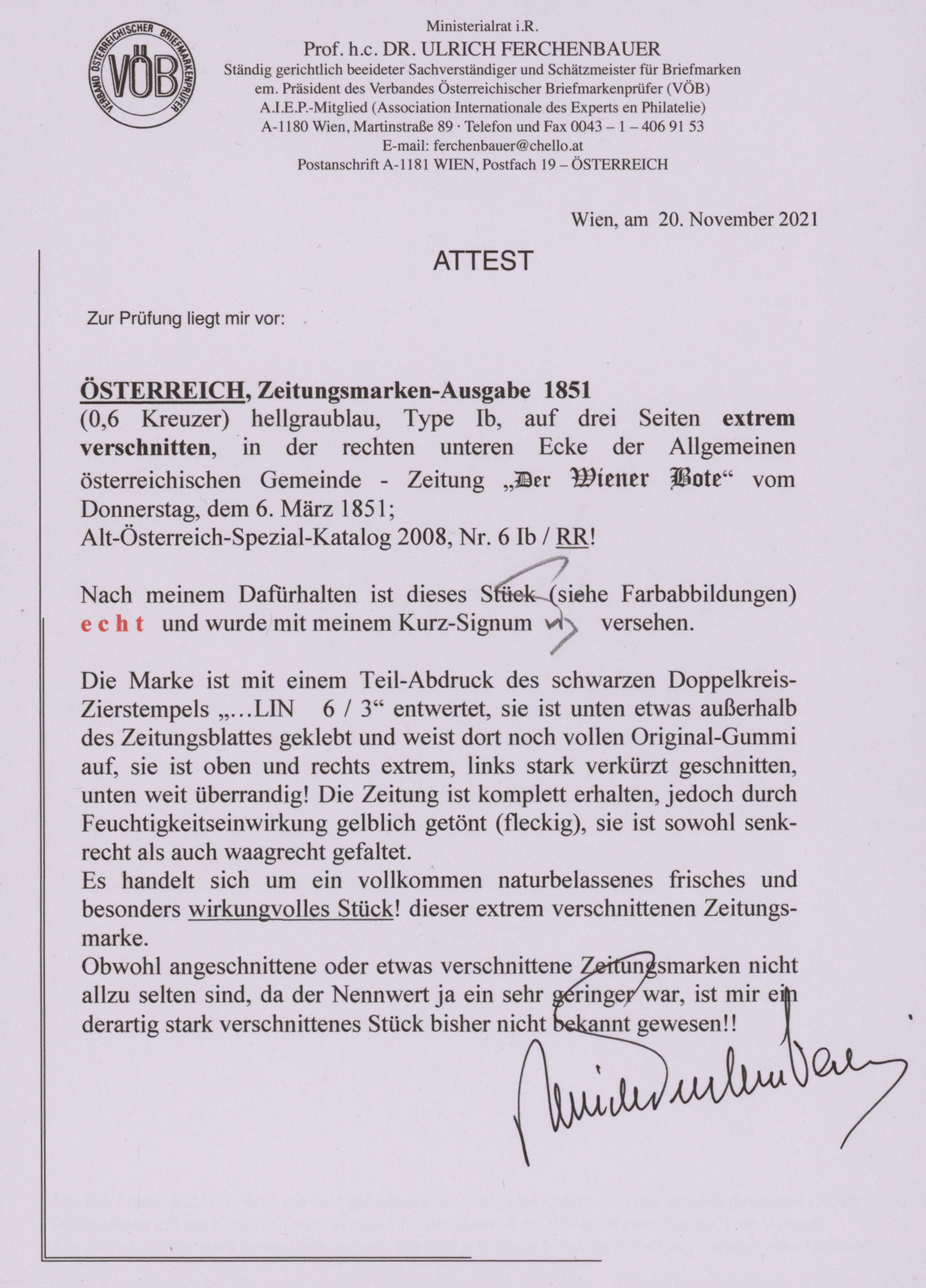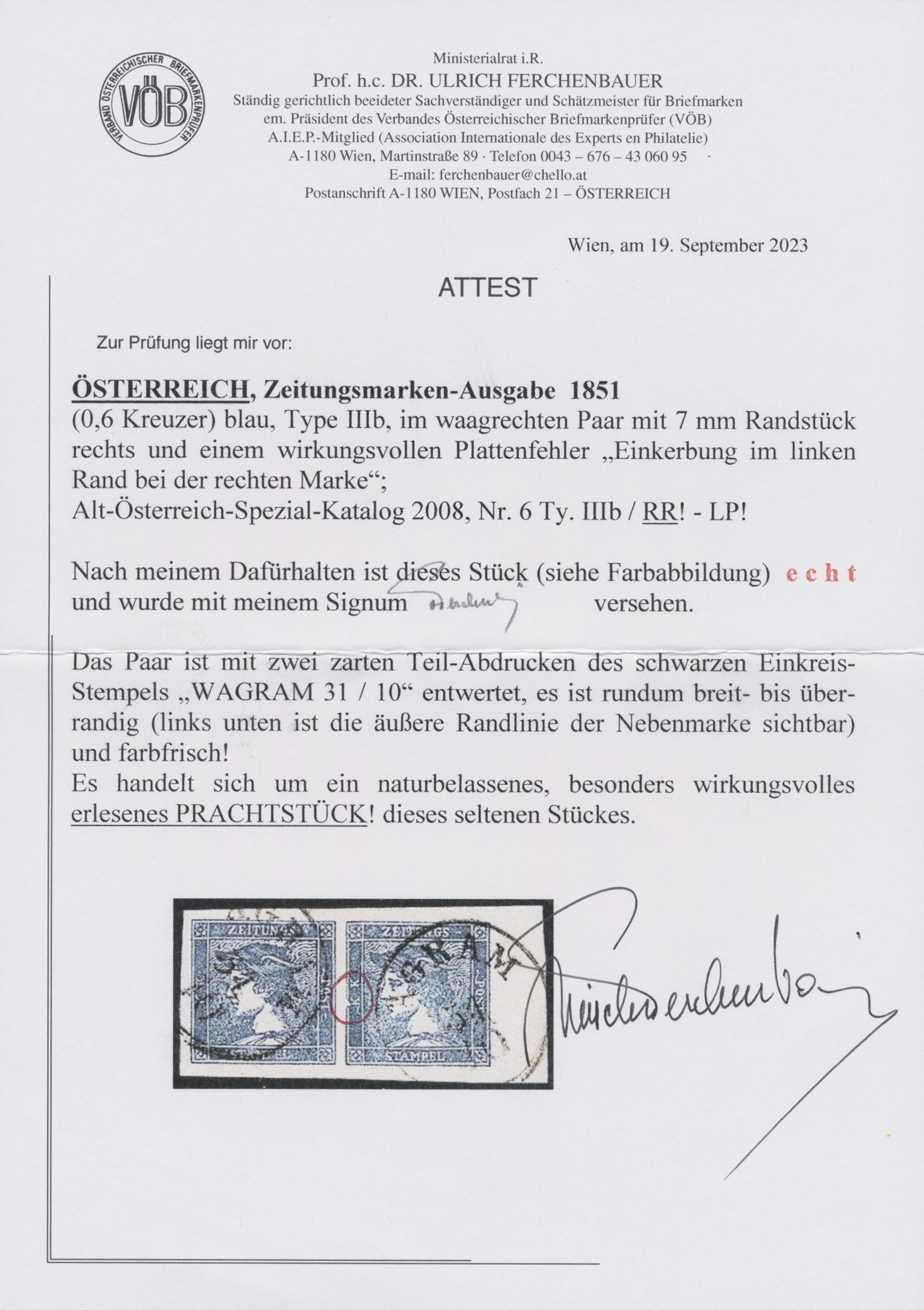 Get Market Data for [Austria Ferch. 6 IIIb (2)] Visual Pricing Guide Sample Census