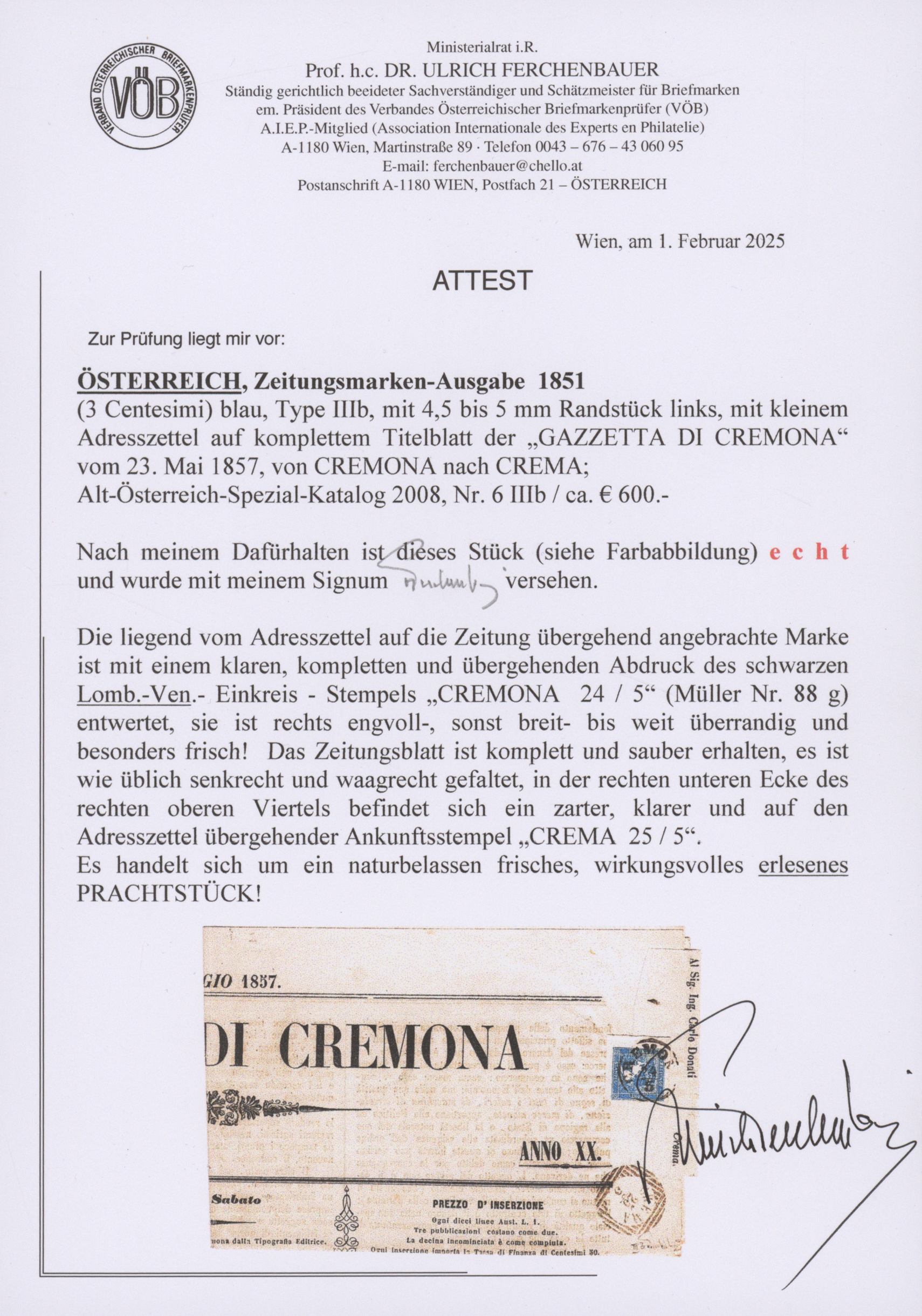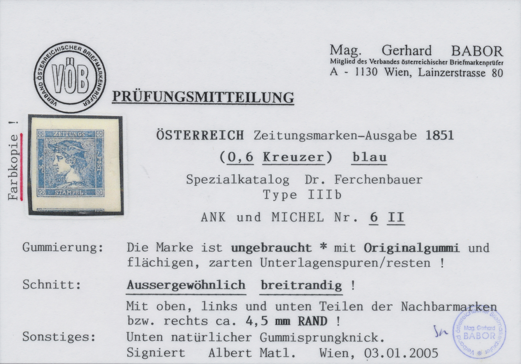 Get Market Data for [Austria 6 II, Ferch. 6 IIIb] Visual Pricing Guide Sample Census