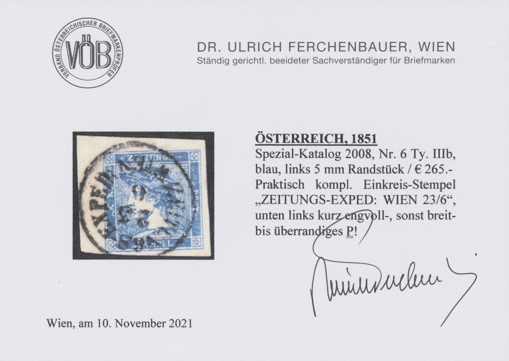 Get Market Data for [Austria Ferch. 6 III b] Visual Pricing Guide Sample Census