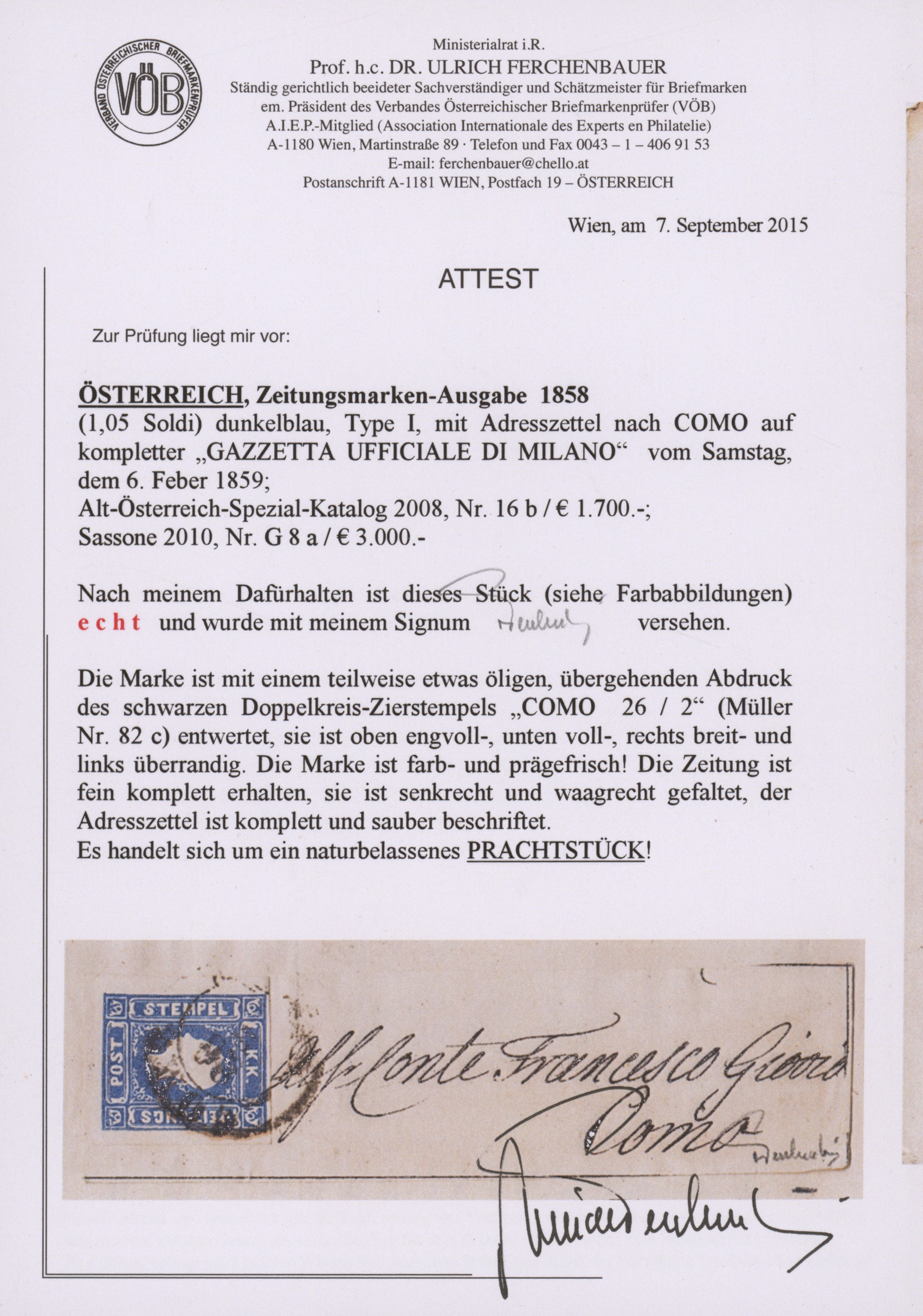 Get Market Data for [Austria 16 b, Sassone G 8 a] Visual Pricing Guide Sample Census