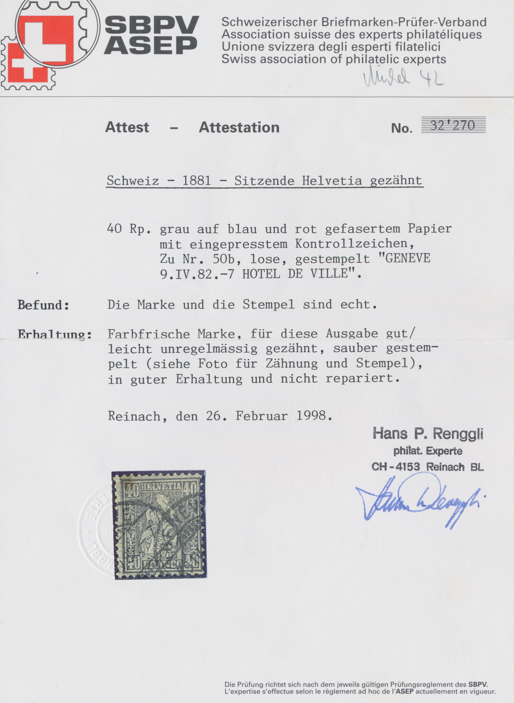 1881 Sitzende Helvetia auf Faserpapier: Kompletter, GESTEMPELTER Satz in guter Erhaltung (übliche Zähnung und 40 Rp. mit Fettfleck oben links, sonst gut/sehr gut), dabei