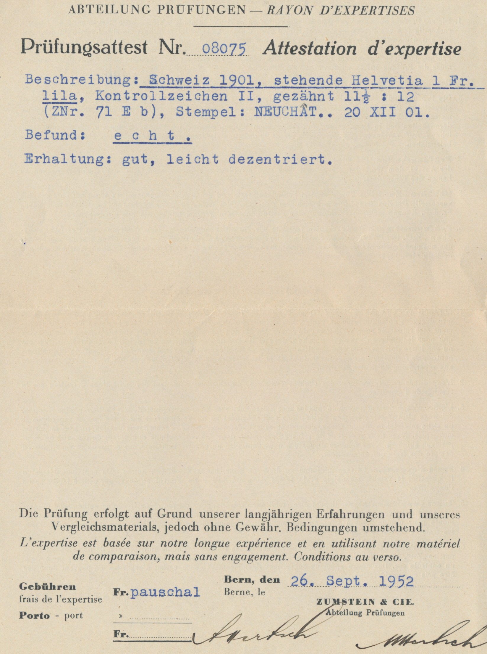 25.XII.1912", in guter Erhaltung. Attest Marchand (1986)