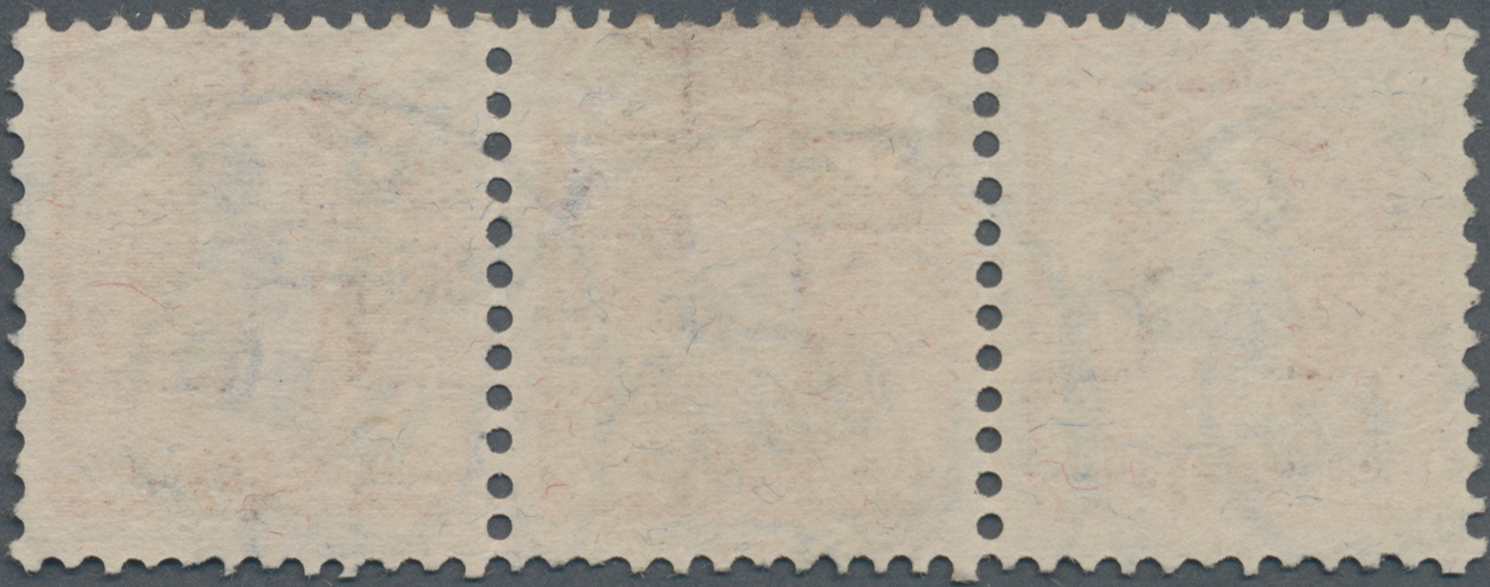 1907 Stehende Helvetia 30 C. hellbraunorange auf Faserpapier, gez. 11½:11, im waagerechten Dreierstreifen, sauber gestempelt "ZUG 13.IV.08", in guter Erhaltung. (Mi. für
