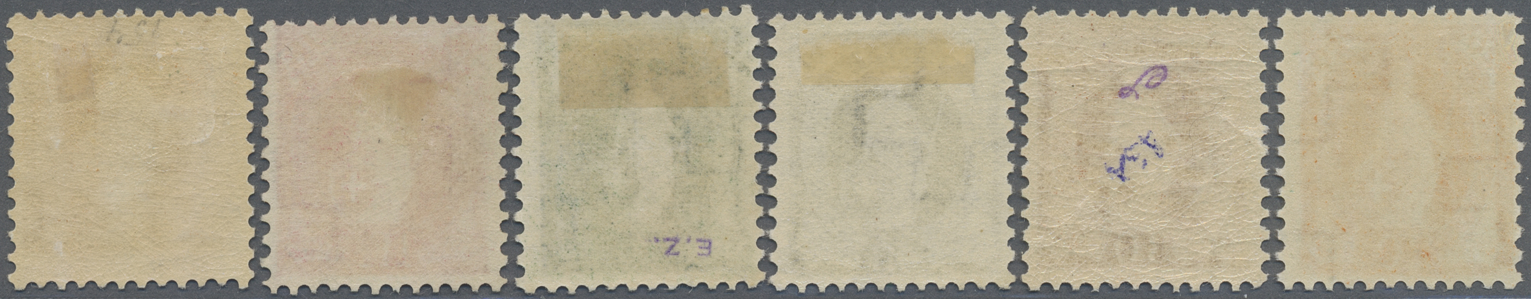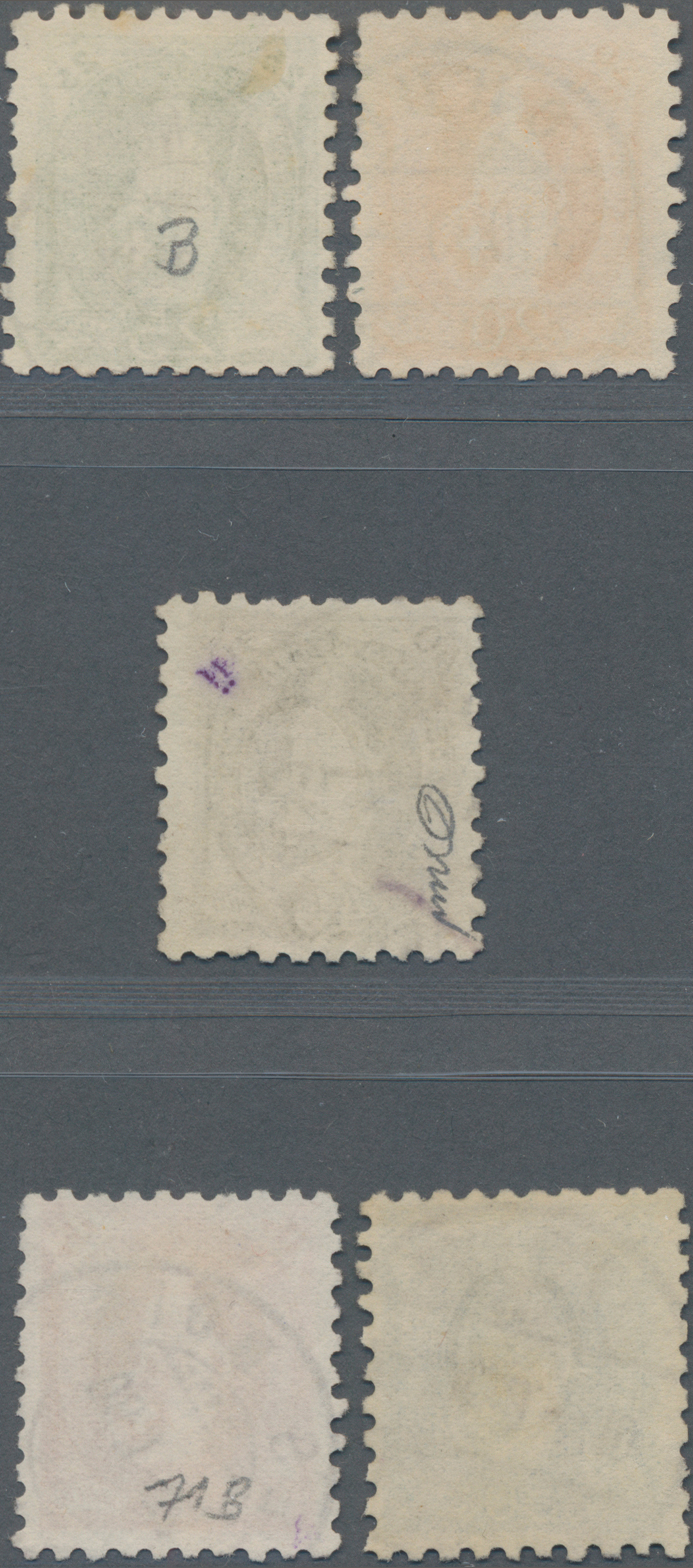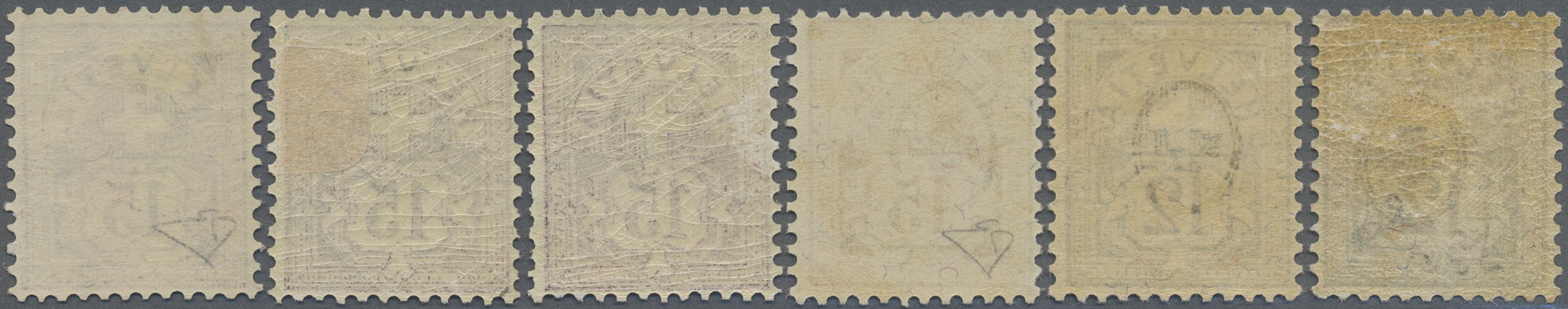 Farbnuancen der 15 Rp. Ziffern von 1906 je *, insgesamt gute Erhaltung (bis auf einen Zahnfehler an der 1 Fr.). (Mi. ca. 1460,- €)