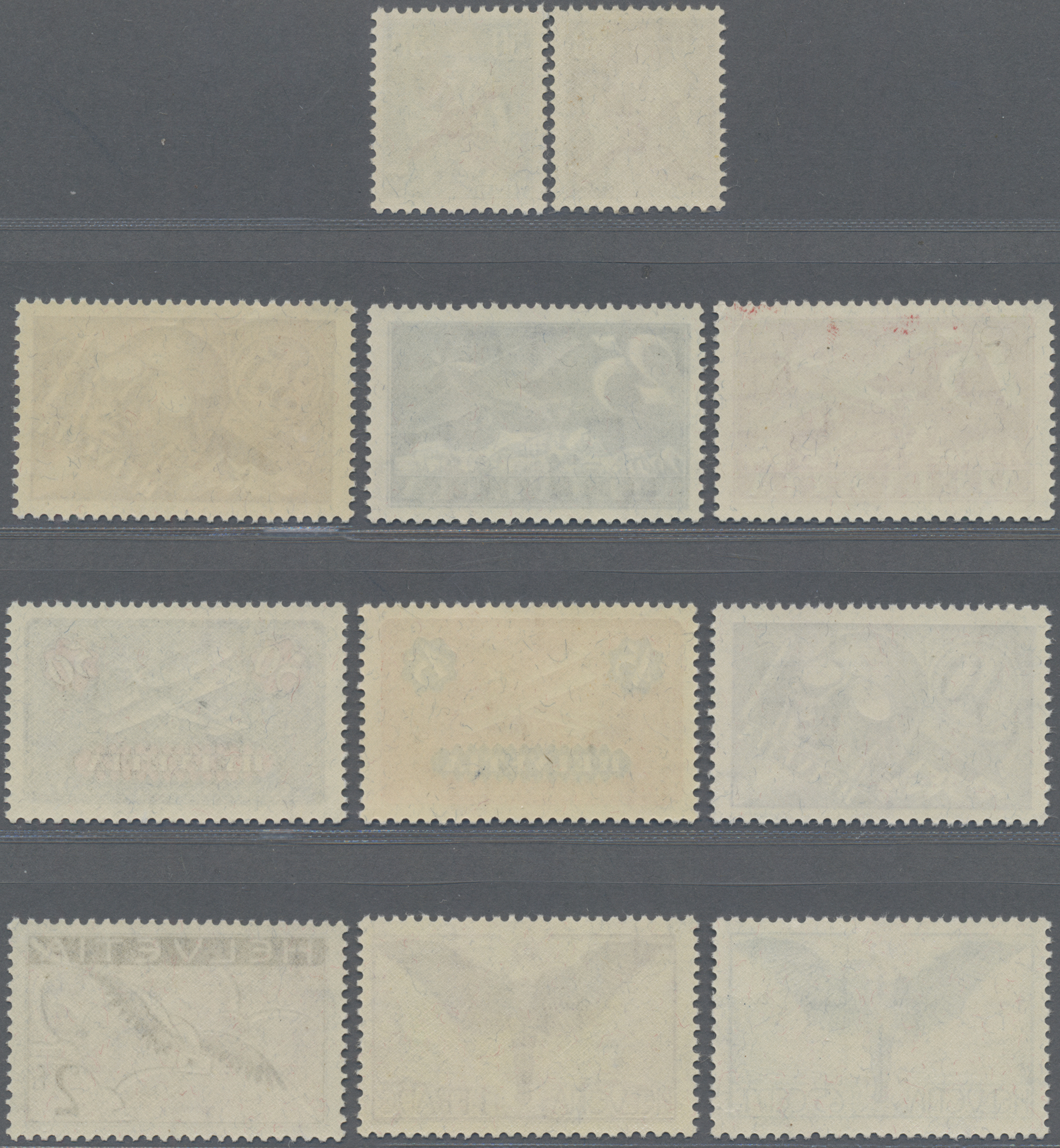 1919-1930 Flugpost: Gruppe von 11 postfrischen Marken, mit beiden "Propeller"-Marken und 9 verschiedenen Werten der folgenden Ausgaben bis 2 Fr. auf glattem Papier. (SBK