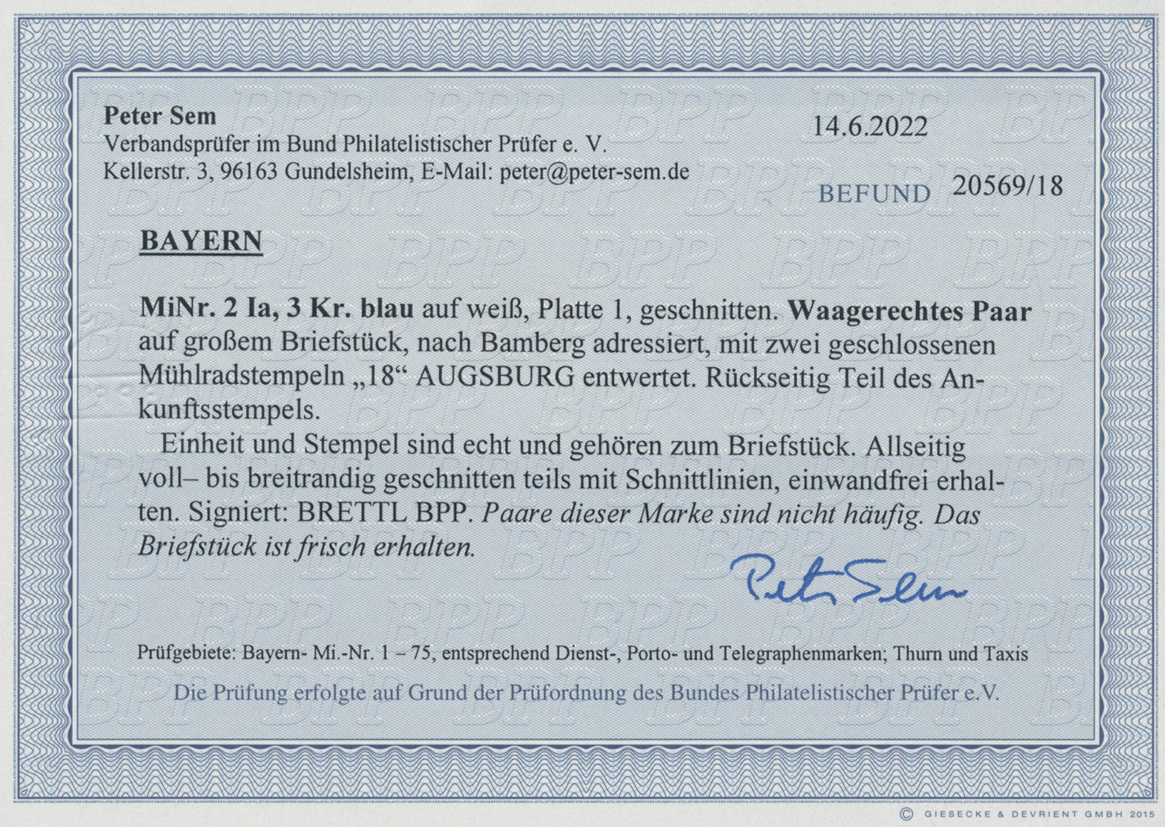 Get Market Data for [Germany (Bavaria) Mi.-Nr. 2Ia (2) (ArGe-Nr.] Visual Pricing Guide Sample Census