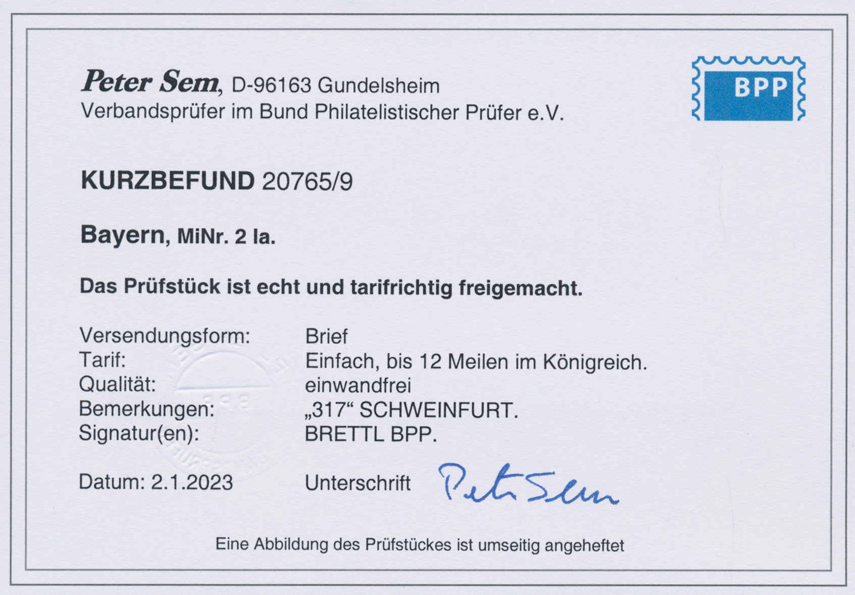 Get Market Data for [Germany (Bavaria) Mi.-Nr. 2Ia (ArGe-Nr. 2Ia] Visual Pricing Guide Sample Census