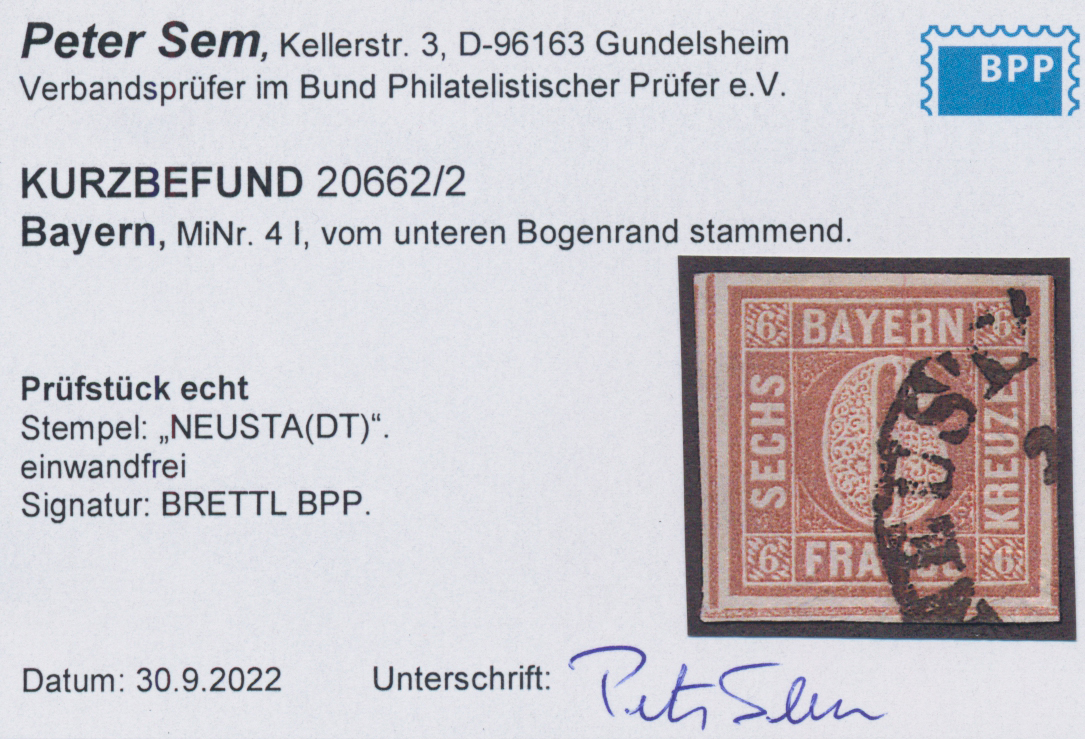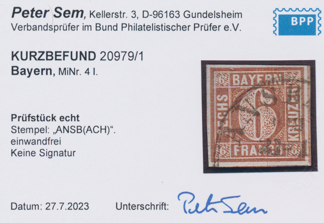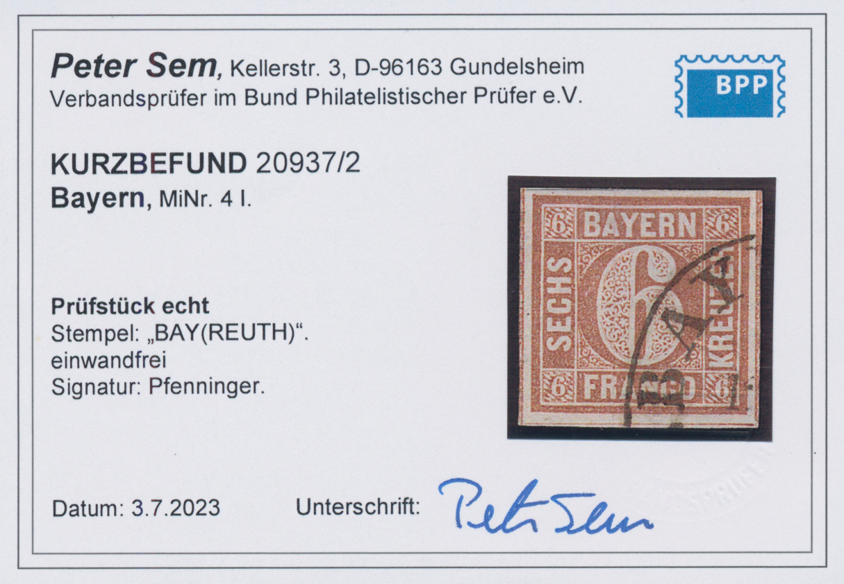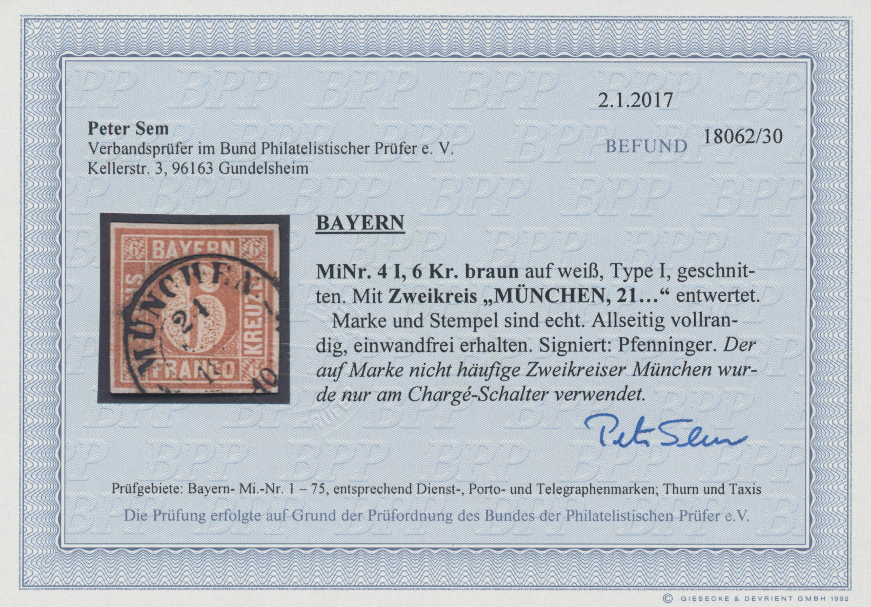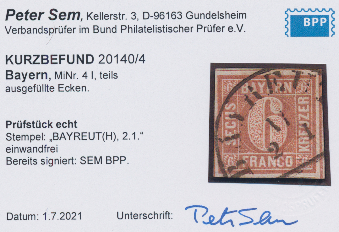 Get Market Data for [Germany (Bavaria) Mi.-Nr. 4I (2) (ArGe-Nr.] Visual Pricing Guide Sample Census