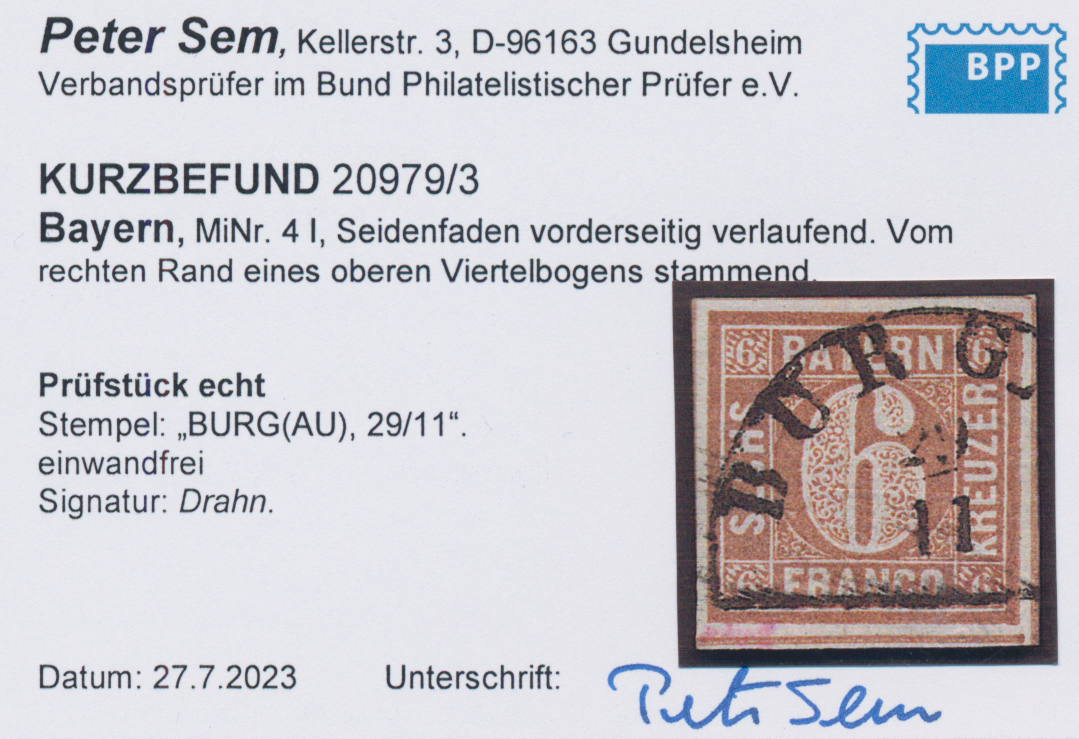 Get Market Data for [Germany (Bavaria) Mi.-Nr. 4I (ArGe-Nr. 3)] Visual Pricing Guide Sample Census