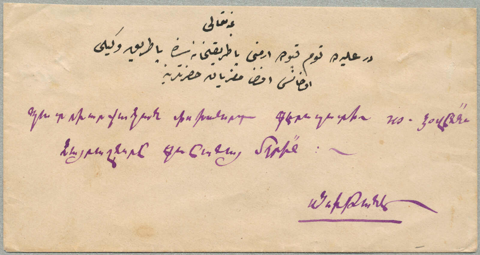 1874-5, ab Dimetoka (osmanisch Thrace), Briefumschlag freigemacht mit 20 para orange und 1 Piaster grün osmanisch Tughra Ausgabe Briefmarken, beide übergehend gestempelt mit Zweikreis DIMETOKA Poststempel in arabisch, zweiter osmanisch kreisförmig Vermerk auf der Rückseite möglicherweise Transit oder Ankunft, Bleistiftparaphe auf der Rückseite bei philatelistisch Fachmann schreibend in Sorani, handgeschrieben zweisprachiges Adresse, seltene Mischfrankatur repräsentierend higher-rate Porto möglicherweise für Einschreiben oder ausländische Bestimmungsort, seltene Verwendung ab multiethnisch region von westliche Thrace während schließlich osmanisch Jahrzehnte, expert-signed Exemplar Hinzunahme philatelistisch Wert und Provenienz, Pracht! Schätzpreis 400 EUR.