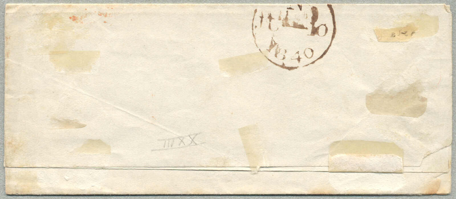 3200 on cover 2 image1840, from London to Wallingford, folded letter franked with 1x 1 d black Queen Victoria, position QL, cancelled with red Maltese Cross, backstamped LONDON 10 JU 1840 in black, addressed to R Deacon Esq, early June usage within the first five weeks after the introduction of the Penny Black on 6 May 1840, stamp with full to close margins, classic and highly collectible first-issue cover from the early Victorian postal reform era, good margins, some staining, VF! Estimate 800€.