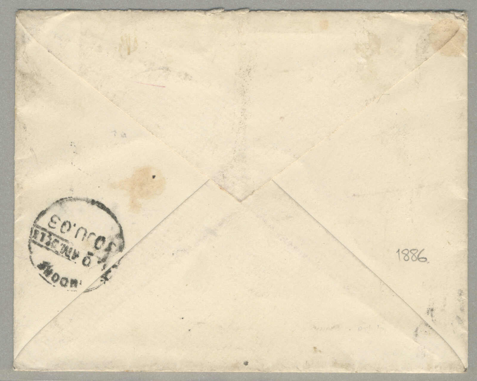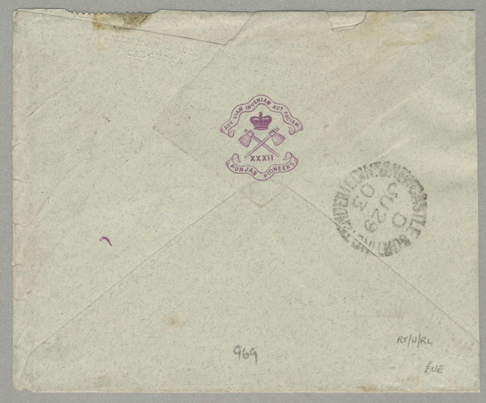 3311 on cover image1905, from FPO No. 4 to CALCUTTA, British India stamped stationary envelope printed 0.5 Anna, tied by FPO No. 4 C.E.R. dated 20. FE. 05, used during the concluding phase of the Third Anglo-Tibetan Expedition, expedition used British Indian Field Post Offices (FPOs) such as FPO No. 4 to handle military mail, FPO No. 4 was stationed along the China–East Railway in Manchuria following British support efforts during the Russo-Japanese War, the route suggests redirection from the Tibetan front via southern India, on reverse with arrival CALCUTTA 23 MA 05 and transit TUTICORIN 19 MA 05 cds, Tuticorin being a strategic port in the Madras Presidency serving as an important node in military logistics and communication, scarce usage, the Third Anglo-Tibetan Expedition (1903–1904) led by Colonel Francis Younghusband was a significant British military incursion into Tibet, intended to counter perceived Russian influence in Lhasa, culminating in the controversial signing of the Lhasa Convention in September 1904, although hostilities ceased by late 1904, military occupation and communication persisted into early 1905 to secure British interests and troop withdrawal, the use of British Indian FPOs beyond the immediate theatre reflects the global reach of British imperial infrastructure and military coordination, particularly during the Russo-Japanese War period where British logistical support aligned with Japanese interests, this postal history item reflects the complex imperial entanglements of the time, spanning the British Raj, Tibetan sovereignty, Sino-Russian competition, and Anglo-Japanese diplomatic cooperation under the 1902 alliance, notable figures associated with the broader conflict and its context include Lord Curzon, Viceroy of India, and Sir Claude MacDonald, British Minister in Peking, whose roles were instrumental in shaping British policy in Asia during this volatile period, ex Kugel, XF! Estimate 900€.