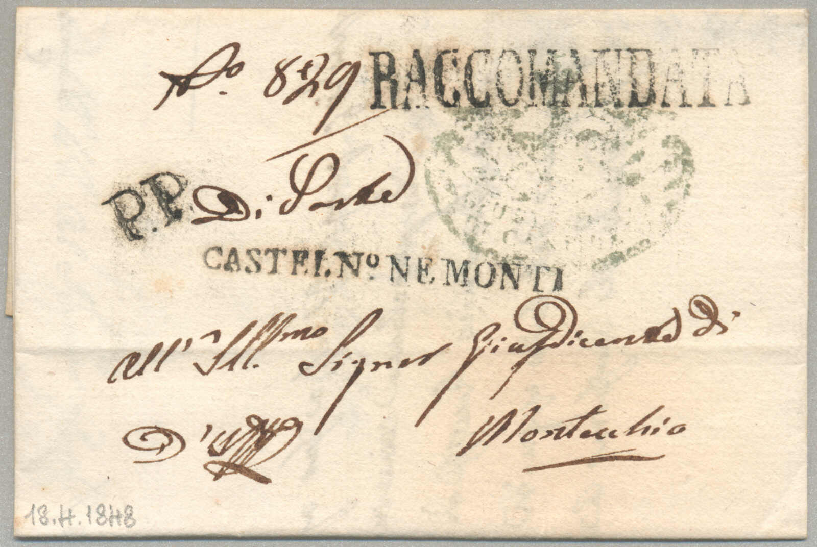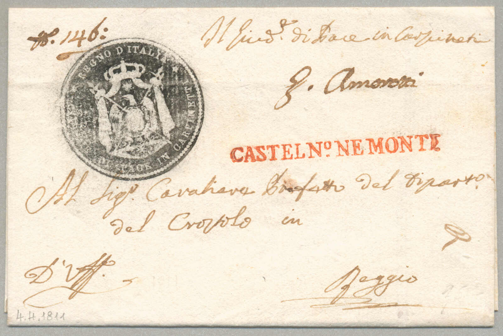 1811, mit sauberem Abschlag des Castelnuovo di Monti, auf Faltbrief, ex Provera, Kabinett! Schätzpreis 160 EUR.