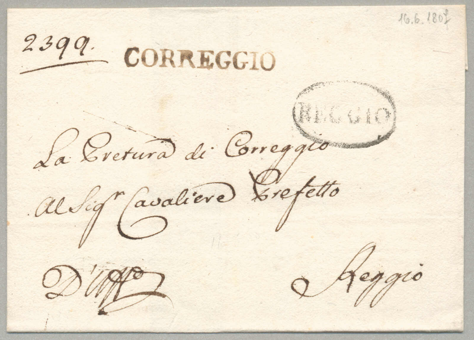 1807, mit sauberem Abschlag des Castelnovo ne Monti und Reggio, auf Faltbrief, ex Provera, Kabinett! Schätzpreis 160 EUR.