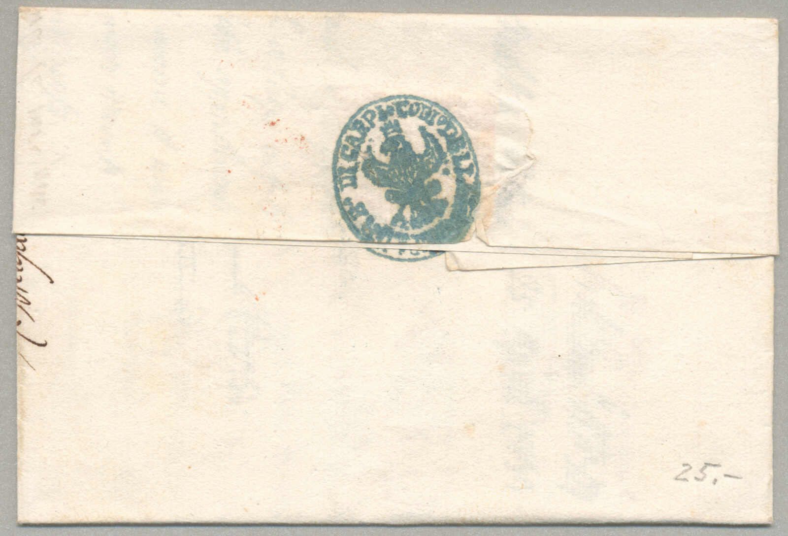 1827, mit sauberem Abschlag des Mirandola, auf Faltbrief, ex Provera, Kabinett! Schätzpreis 120 EUR.