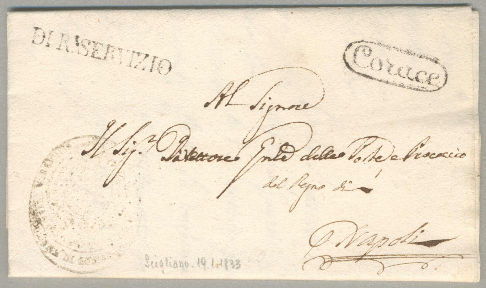 2716 on cover image1833, with neatly strike of Corace, on folded letter, ex Provera, XF! Estimate 200€.