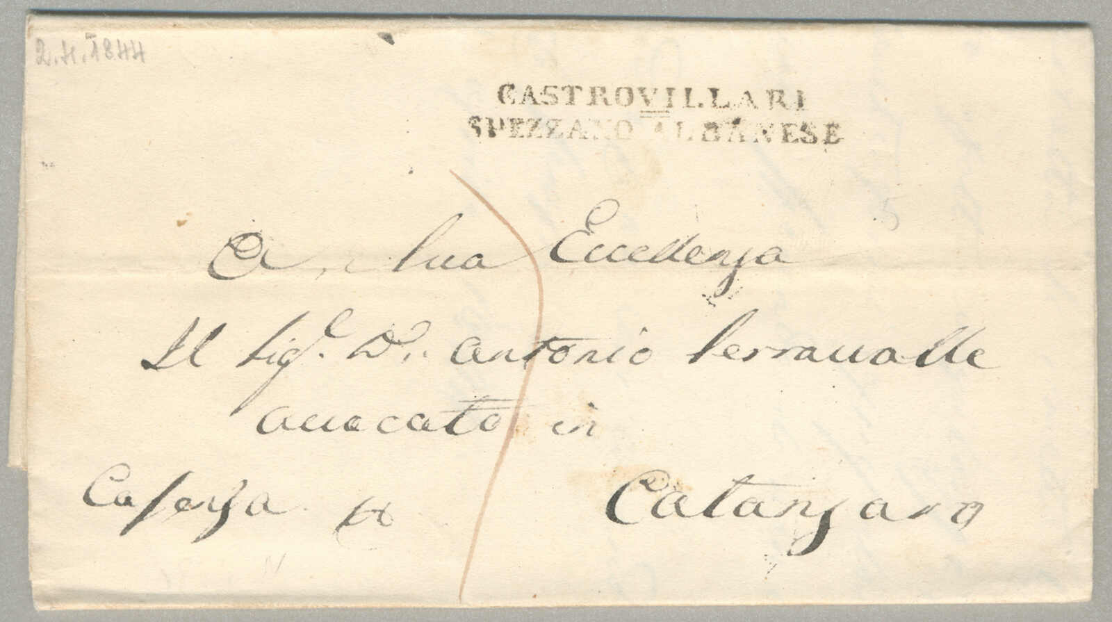 2704 on cover image1844, with neatly strike of Castrovillari Spezzano Albanese, on folded letter, ex Provera, XF! Estimate 120€.