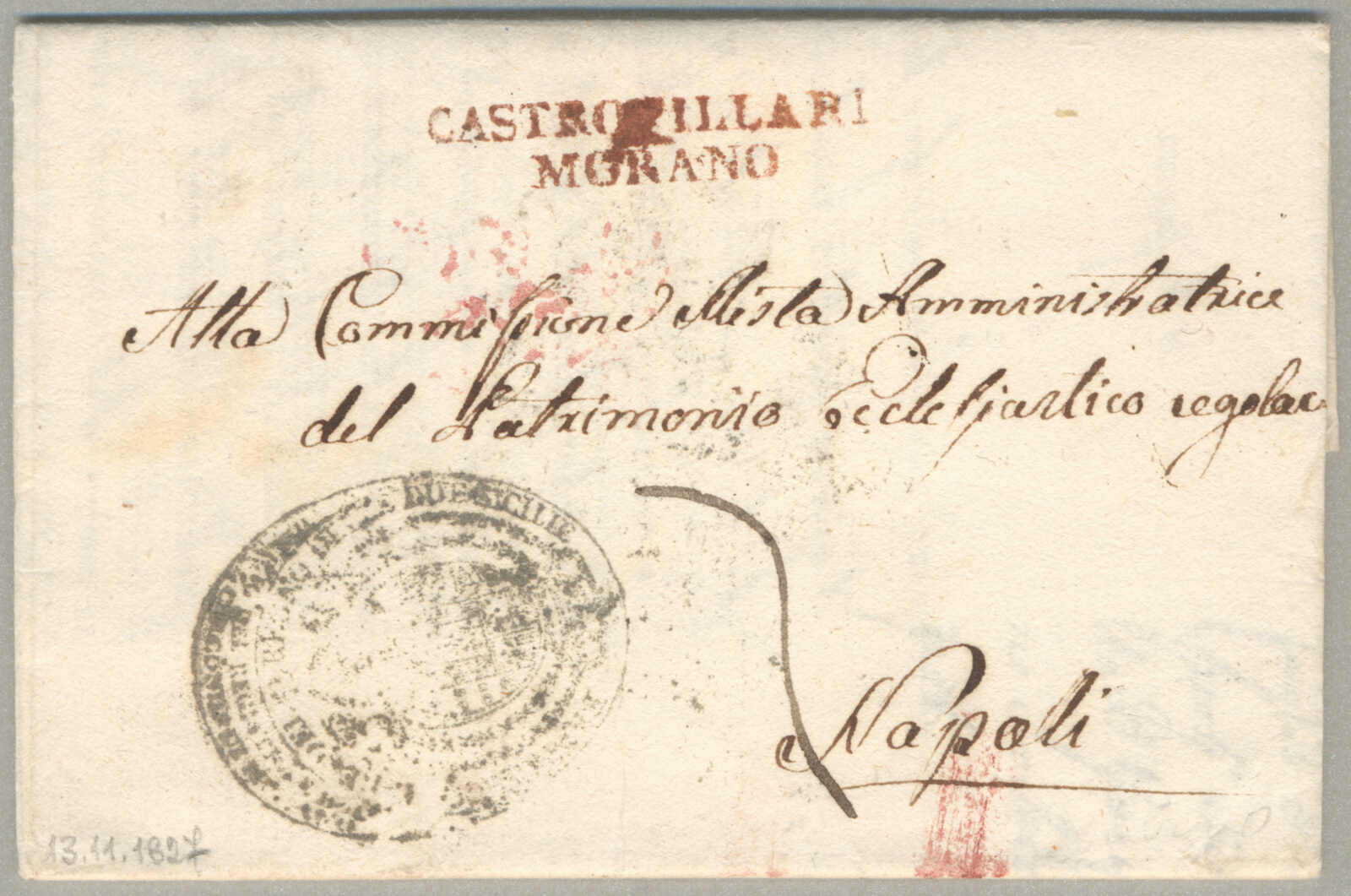1827, mit sauberem Abschlag des Castrovillari Morano, auf Faltbrief, ex Provera, Kabinett! Schätzpreis 160 EUR.