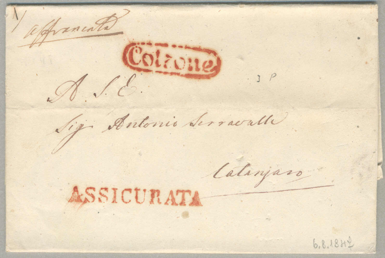 2712 on cover image1842, with neatly strike of Cotrone, on folded letter, ex Provera, XF! Estimate 120€.