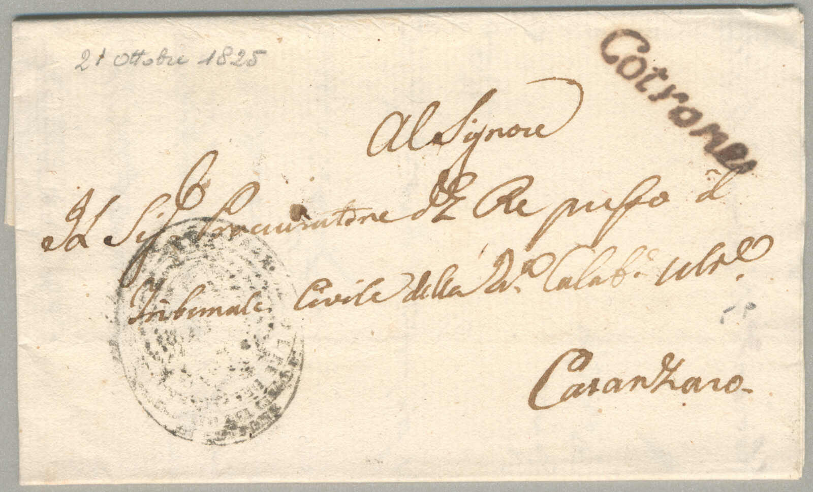 2714 on cover image1825, with neatly strike of Cotrone, on folded letter, ex Provera, XF! Estimate 120€.
