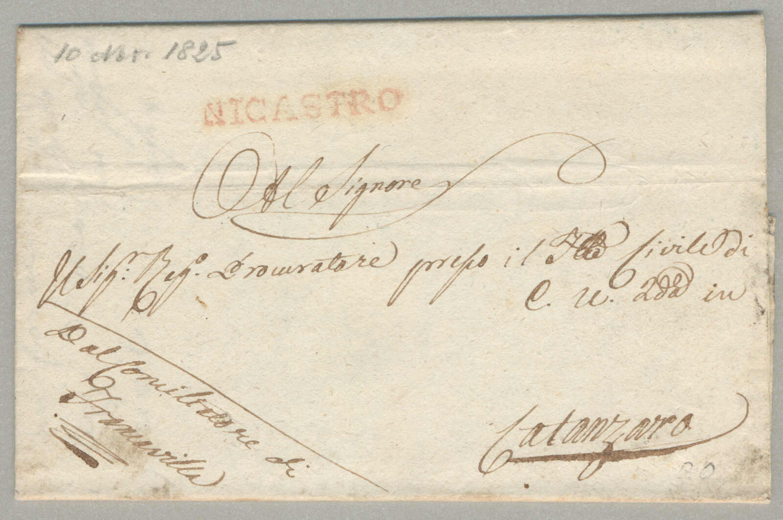 1825, mit sauberem Abschlag des Nicastro, auf Faltbrief, ex Provera, Kabinett! Schätzpreis 100 EUR.