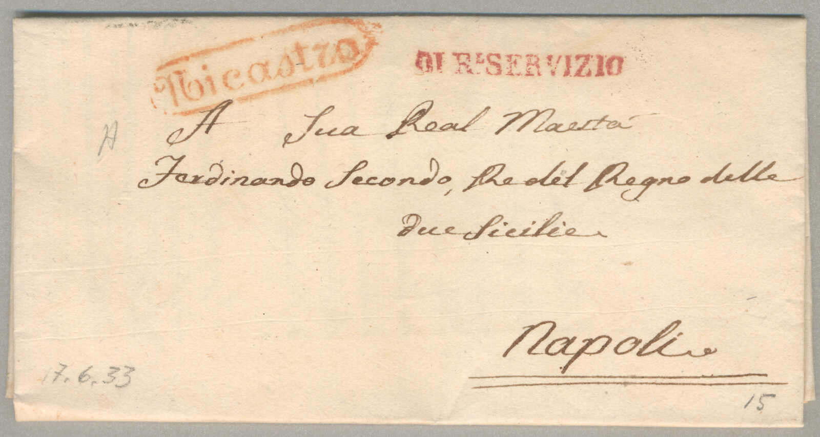 1833, mit sauberem Abschlag des Nicastro, auf Faltbrief, ex Provera, Kabinett! Schätzpreis 80 EUR.