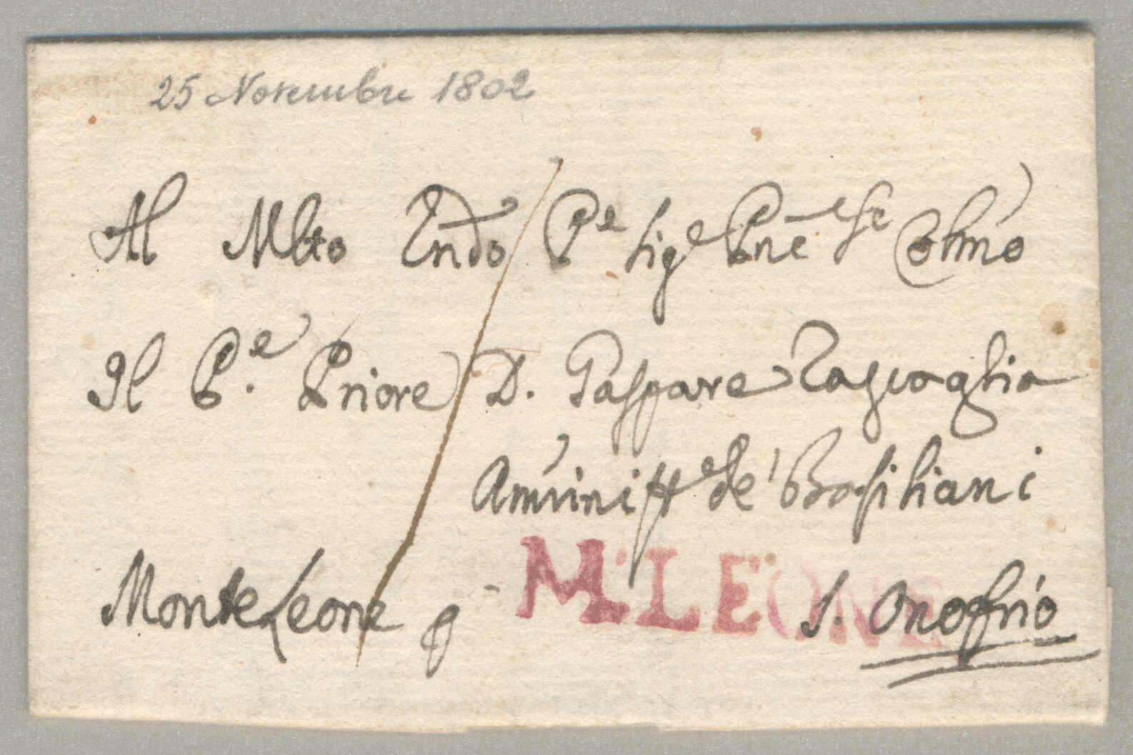 2770 on cover image1802, with neatly strike of M. Leone, on folded letter, ex Provera, XF! Estimate 1.000€.