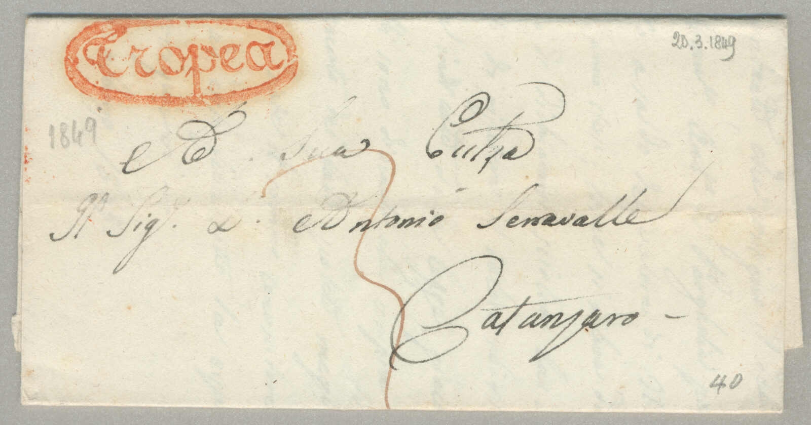 2824 on cover image1848, with neatly strike of Tropea, on folded letter, ex Provera, XF! Estimate 160€.