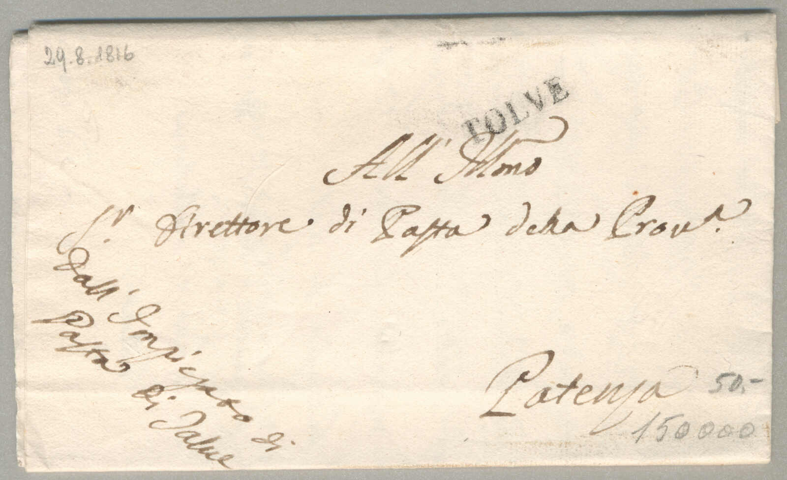 2822 on cover image1816, with neatly strike of Tolve, on folded letter, ex Provera, XF! Estimate 200€.